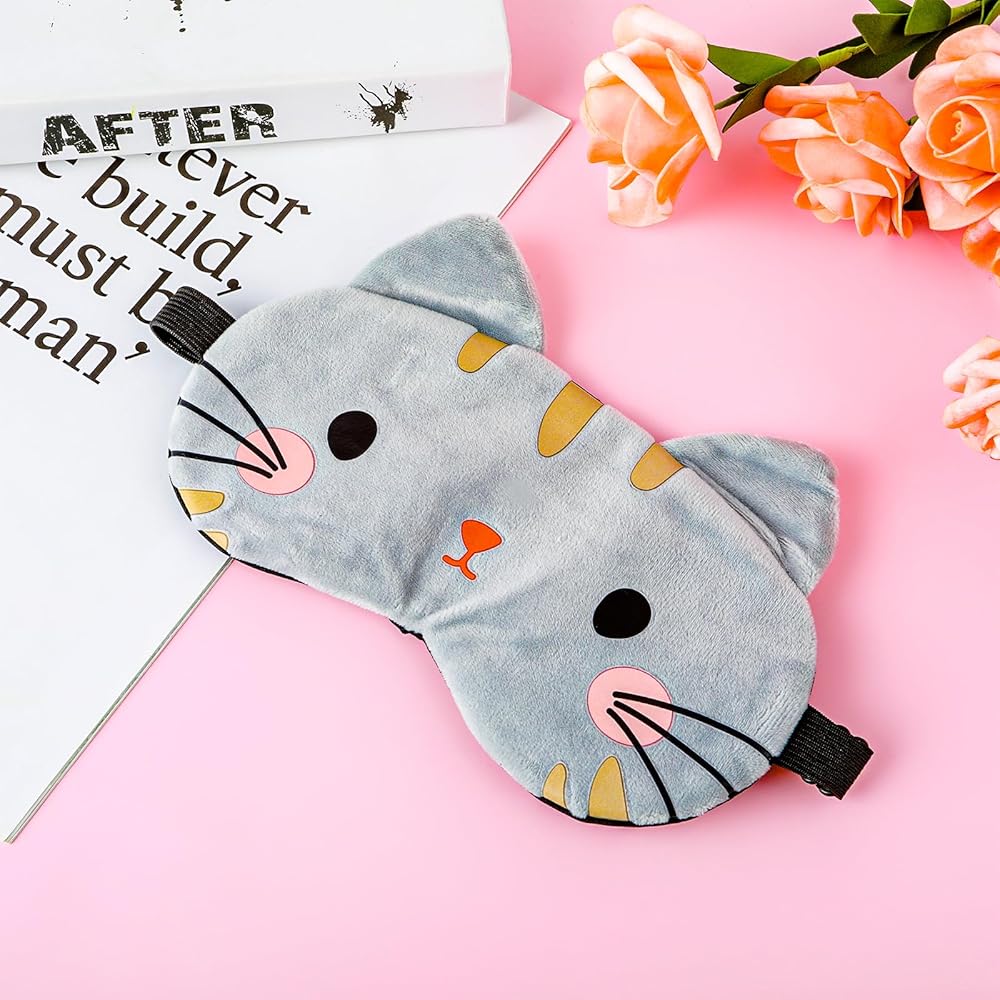 Cute Sleeping Eye Mask Soft Plush Cartoon Cat Blindfold Comfortable Animal Eye Cover Funny Novelty Sleeping Eye Shade for Women Men Kids Travel Nap Sleeping
