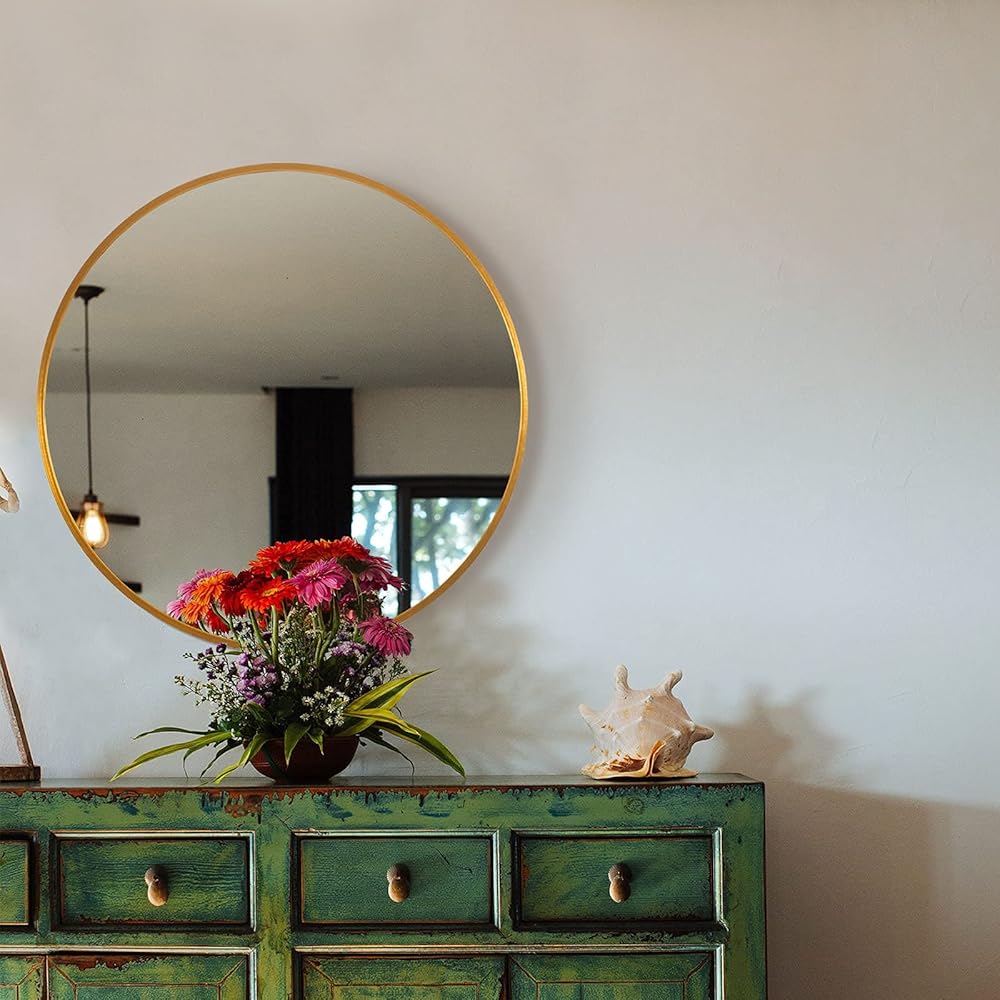 MIRUO Round Mirror 20 inch Circle Mirrors for Wall Mounted Decorative for Bathroom, Bedroom, Entryway Décor, Aluminum Alloy Thin Frame (20'', Gold)