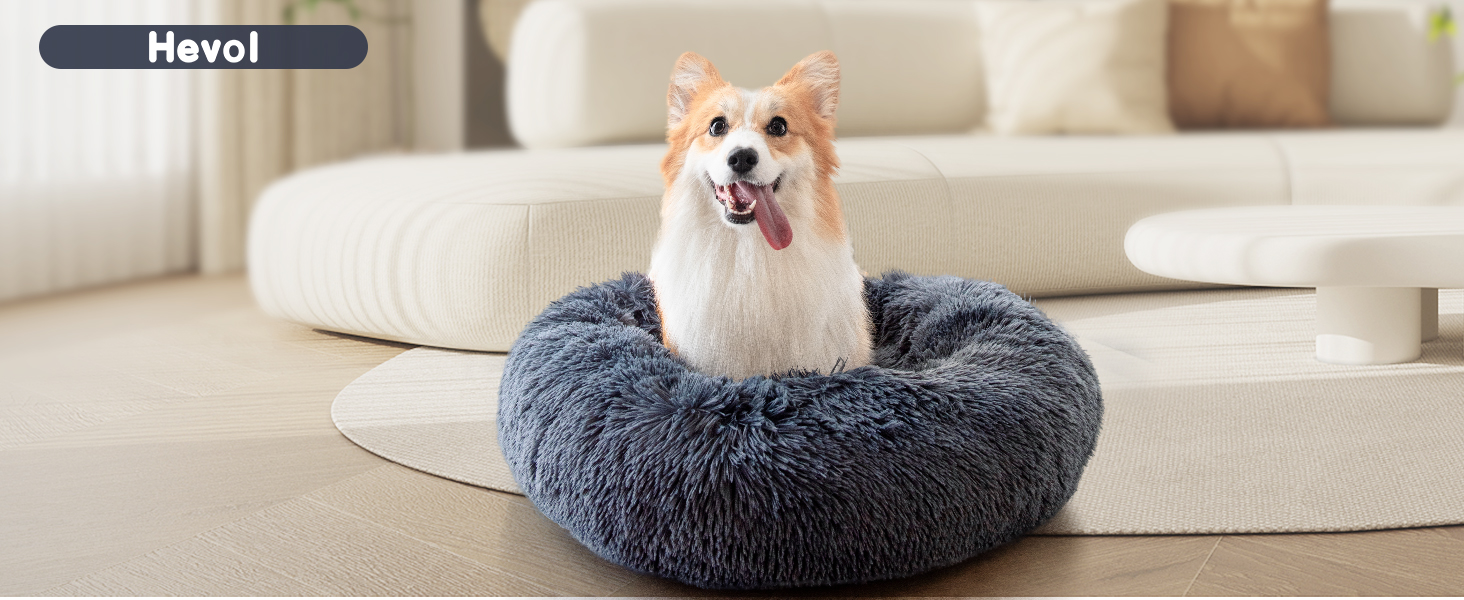 HEVOL Calming Dog Bed for Small and Large Dogs, 30''*30'' Anti-Anxiety Donut Washable Large Pet Bed, Super Soft Fluffy Luxury Anti-Slip Cushion Cat Bed, Fits up to 45 lbs Pets, Black