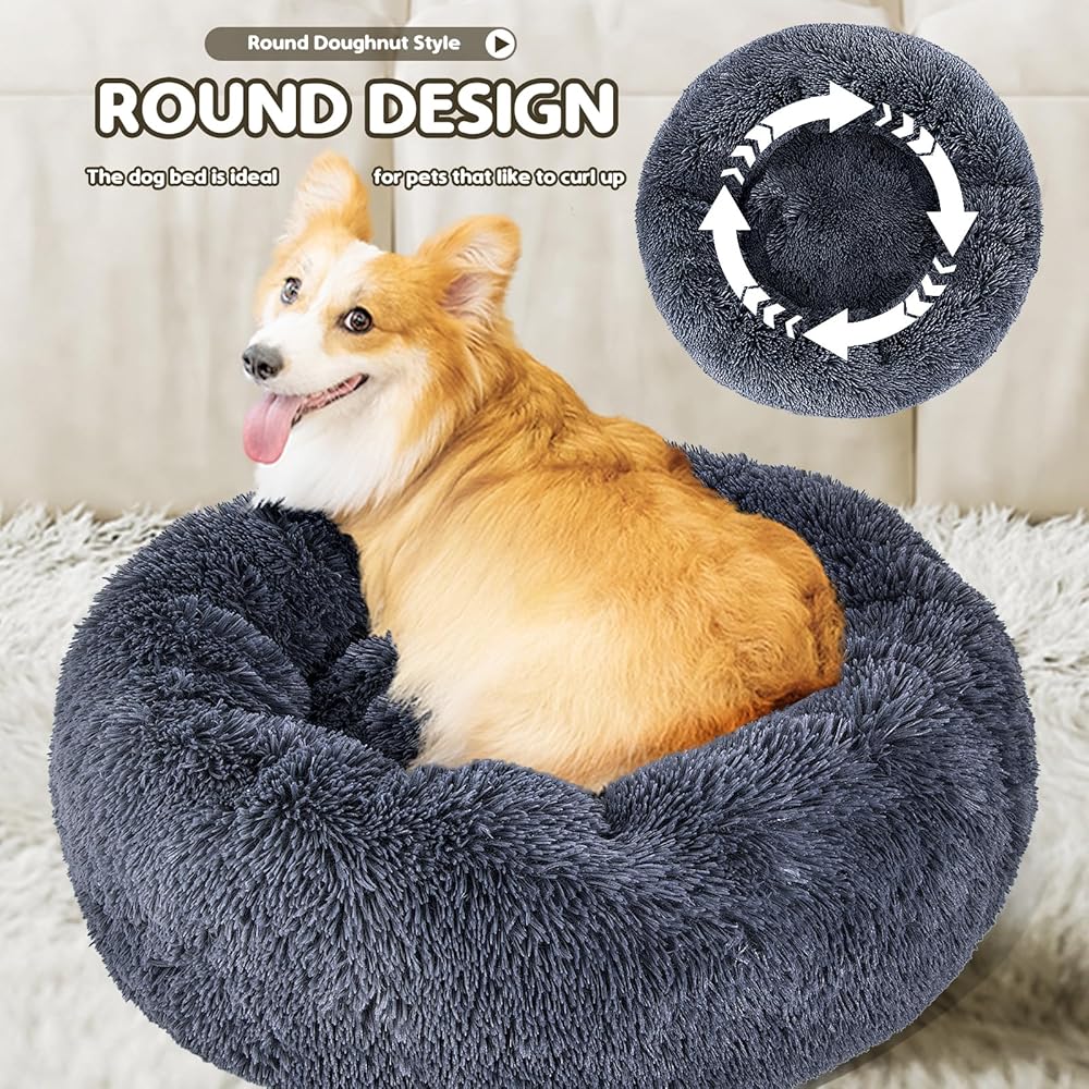 -Better Sleep Position-: The plush dog bed features a donut cuddler type design with warm grooves and raised edges to provide plenty of security for cats and dogs. Ample filling material gives support power to your pet's head and neck, releasing their joint and muscle soreness after the exercise process.