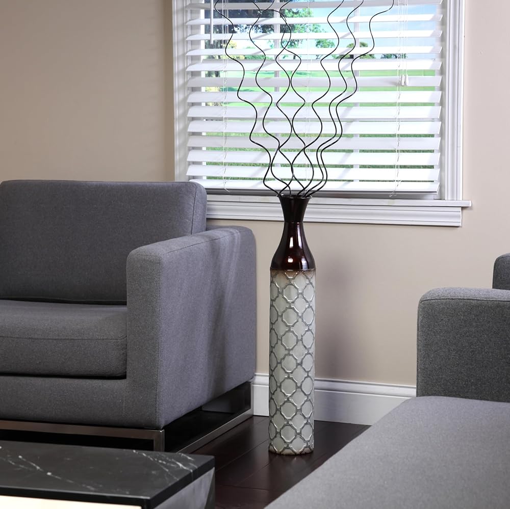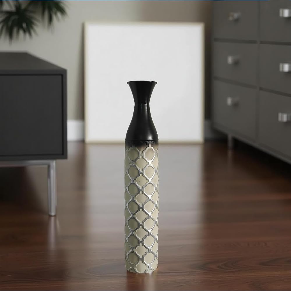 Hosley's Multi Colored Metal Embossed Tall Floor Vase.-24.5" High. For decorative use only. Hosley vases are for decorative use and are made for Artificial Flowers Only. Hosley vases are classically stunning and go excellent with any artificial flower arrangement big or small. You can add faux stems, greenery, bouquets, and flowers to add additional color to your decor. These vases are perfect for coffee tables, dinner tables, bookcase, shelves, mantel, kitchen, living room, & your office. Standing alone, this vase will add a decorative piece to anywhere in your home or office. TIP: if you wish to add dried florals and/or to prevent pets knocking vase down, add some floral filler marbles or rocks to help weigh the base down. Must use protective liner if used with fresh flowers (Leakage may occur).