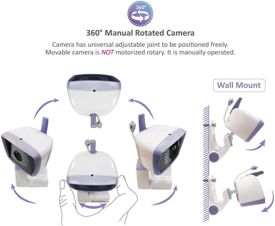 【CAMERA WALL MOUNT READY】Camera swivel comes with universal joint design allows for optimal positioning on baby, for tabletop or wall mounting (mounting screws are included)