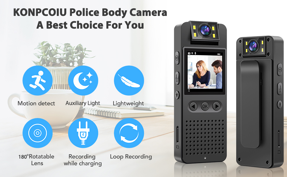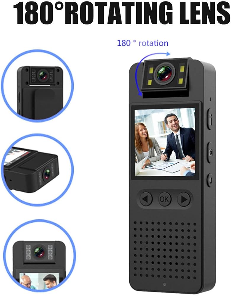 Multi-Angle Rotation Full HD Viewing Angle and Motion Detection: The body camera with 180° rotatable/130° full HD lens can adjust the shooting angle according to needs, ensuring that important evidence will not be missed due to the wrong angle. Motion detection helps save battery and storage space when continuous video is not required. In addition, the camera is equipped with 4 super bright fill lights, which can provide you with a clear visual experience in any place and day/night.