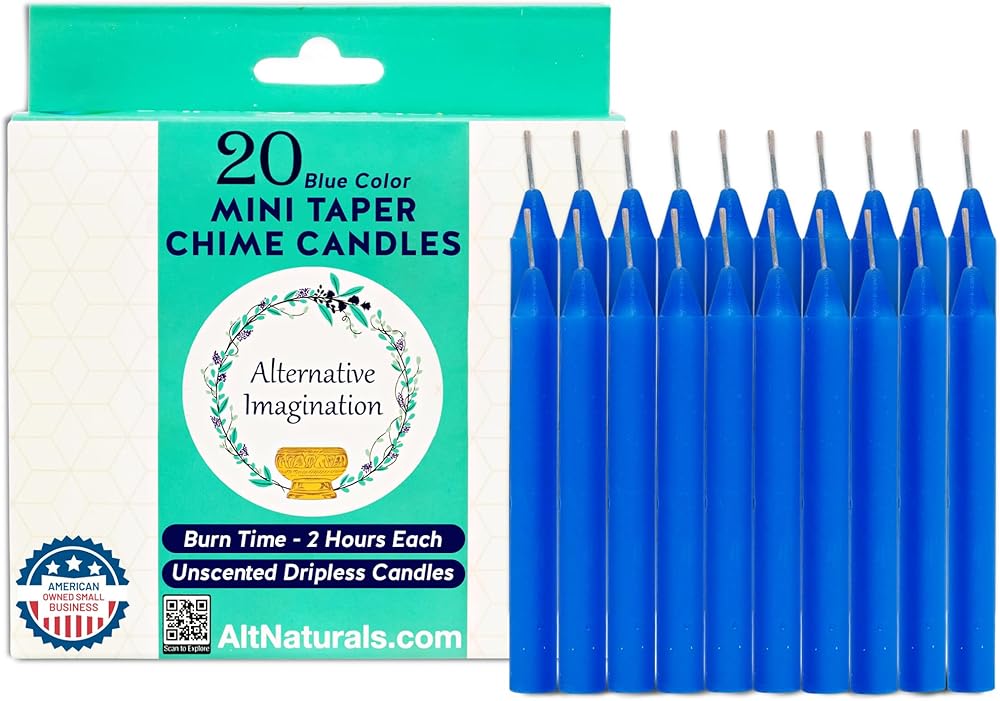 Alternative Imagination Blue Chime Candles - 20 Pack of Unscented 4 Inch Mini Taper Candles - Dripless Long Burning Ritual Candles for Meditation, Spell Work & Home Decor