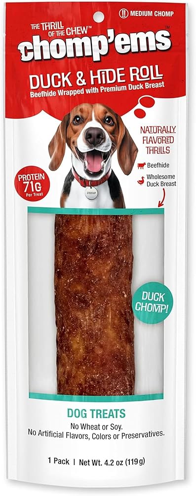 Give your dog something special! Chomp'ems Premium Beefhide & chicken chews combine two of your dog's favorite things: the satisfying chew of beefhide with the meaty flavor of real premium chicken breast fillets. The beefhide satisfies your dog's chewing instincts, strengthens teeth and gums, and works to reduce tartar build-up. The chicken provides a nutritious treat that is low in fat and rich in protein. These chews are great for dogs of all ages and sizes.