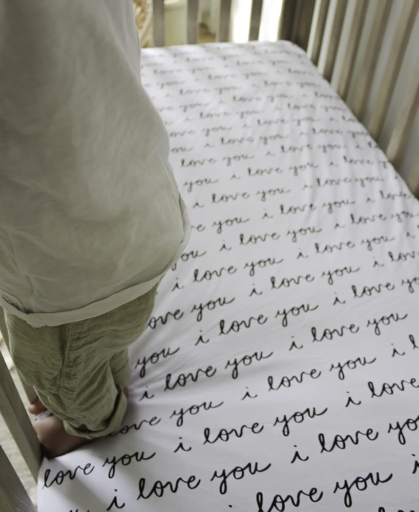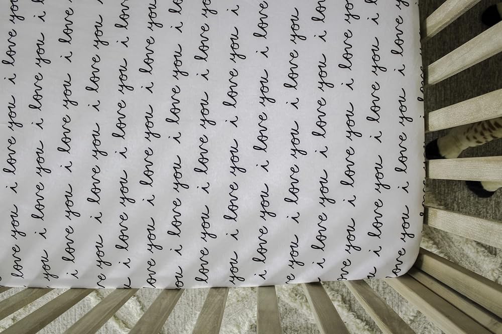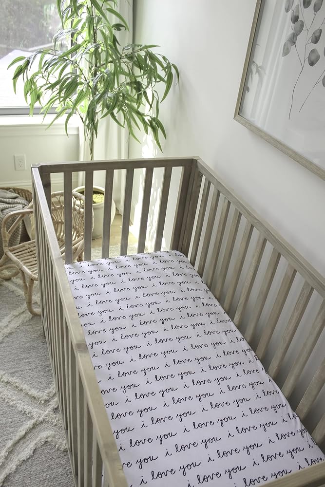 NODNAL CO. Fitted Crib Sheet - 100% Cotton for Baby Girl/Boy Nursery Bedding - Gender Neutral Patterns and Colors - Unisex for Standard Baby or Toddler Crib Mattress (I Love You)