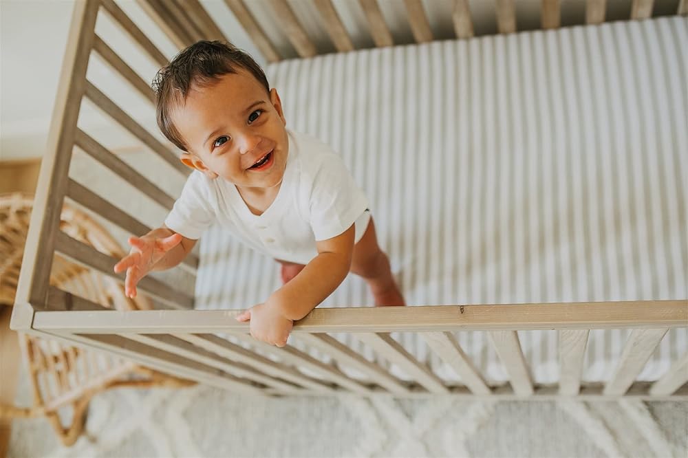 Rise and shine little one. Designed with neutral prints in mind, our fitted crib sheets feature a variety of patterns and colors. Carefully crafted from OEKO-TEX Standard 100 Certified Cotton to be soft, breathable and durable like your favorite t-shirt for a super soft feel that only gets better over time.