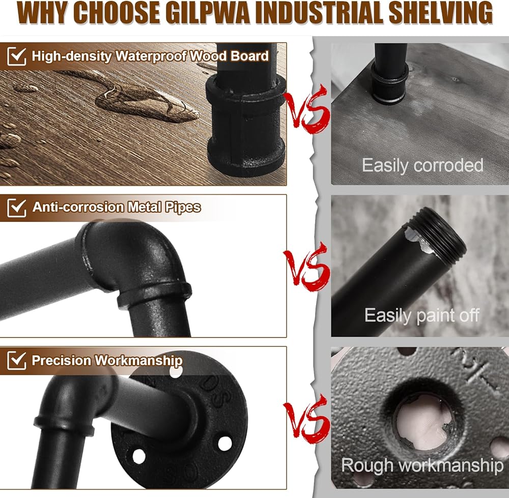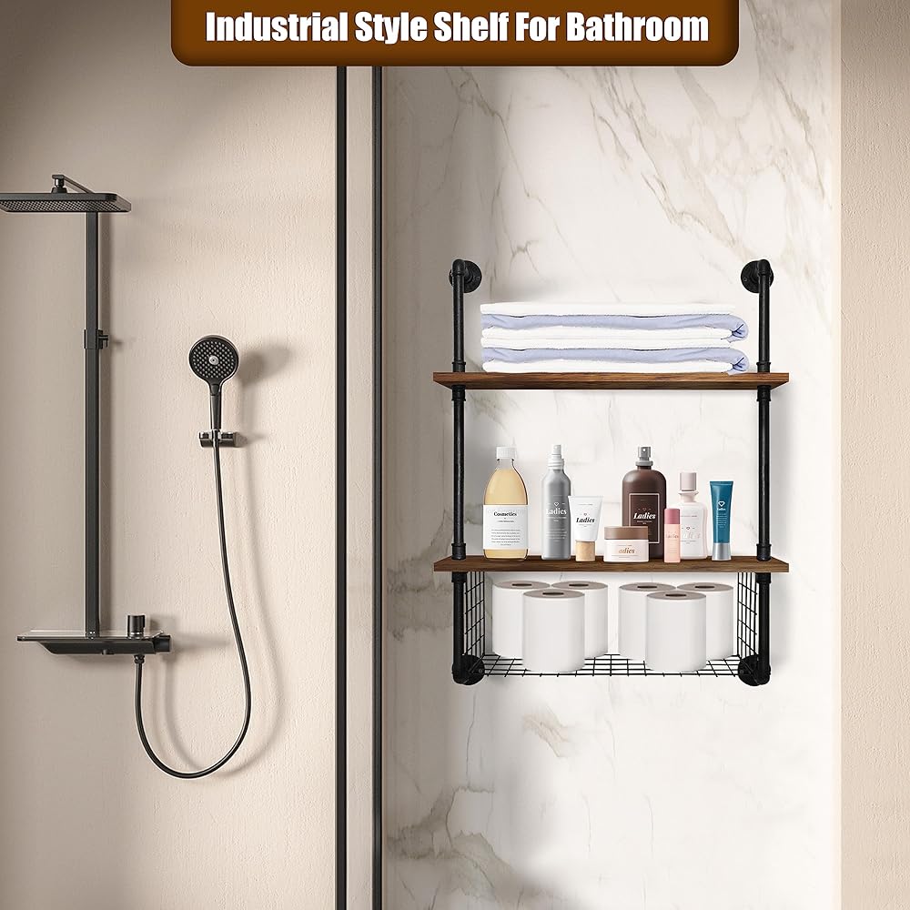 🏠【Premium Material, Sturdy and Durable】Bathroom shelves are made of high quality iron and density wood. The iron pipe is sprayed with high adhesion paint, make the industrial pipe not only anti-proof, but also aesthetically pleasing. The wood is density wood, unlike solid board, the density board has stable performance and firm edges, avoiding problems such as decay and insect damage that traditional materials are prone to.
