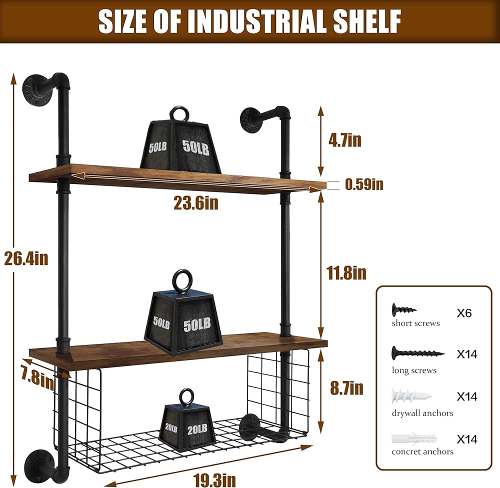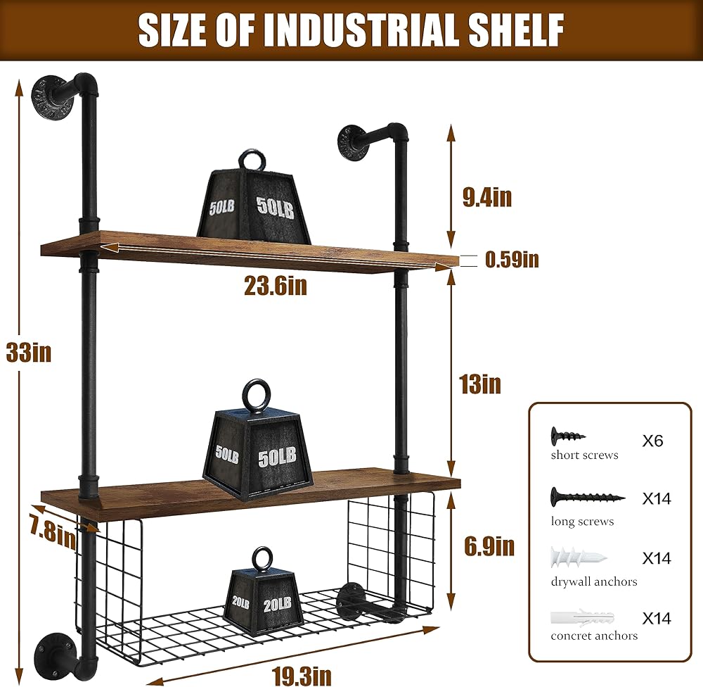 🏠【Complete Accessories and Easy Installation】Shelf comes with long screws*12, short screws*6, concrete anchors*12, gypsum anchors*12, an extra basket that can be used to hold towels, rolls of paper, and so on. With detailed instructions and video guidance, you can easily install the wall shelves independently within 15 minutes and enjoy the happiness it brings to you!
