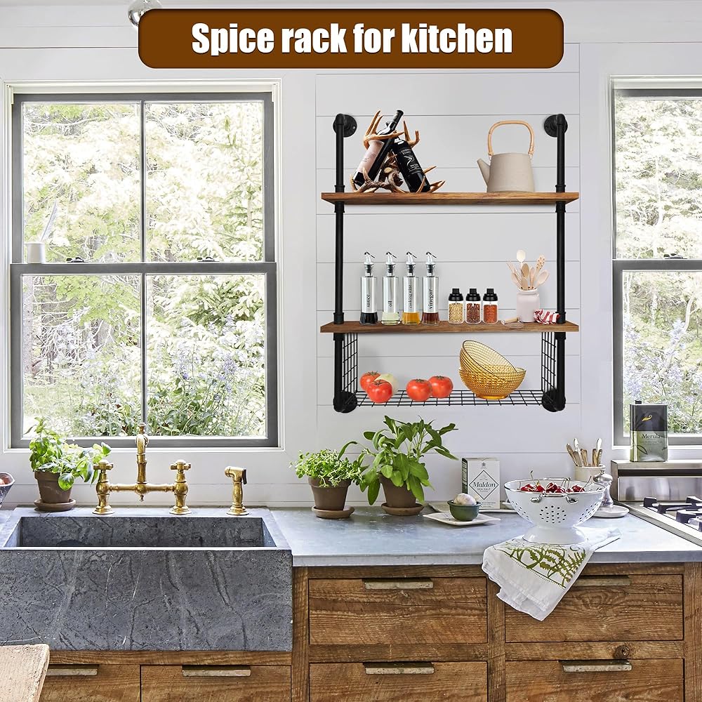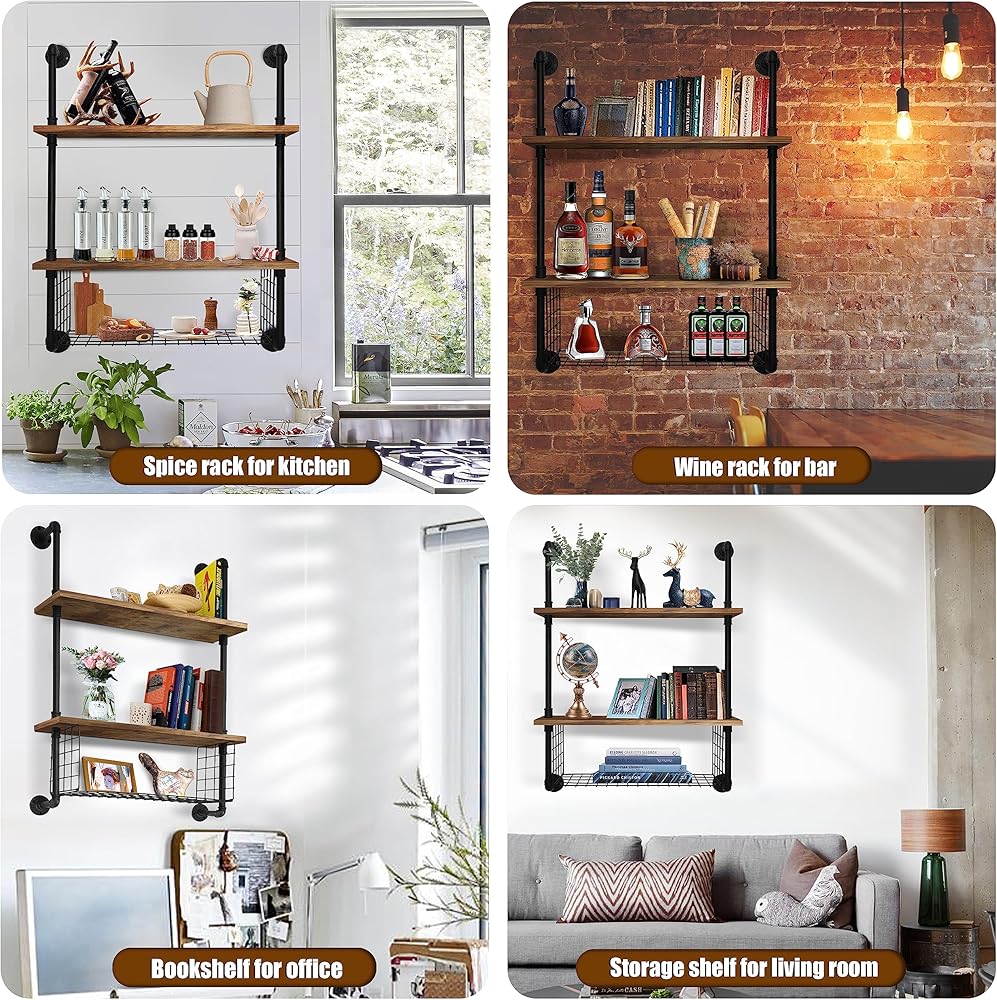 🏠【Practical and Rich in Usage Scenarios】Floating shelf is 31.9*16.9 inch,which is a perfect choice for your bathroom, bedroom, kitchen, storeroom, living room and anywhere you need it to be! What's more, with sturdy iron pipe and durable board, you can freely place what you need on this shelf such as toiletries, bathroom supplies, potted plants, tools, tableware, etc. With high quality iron and density board, your wall shelf will surely sturdy and durable enough!