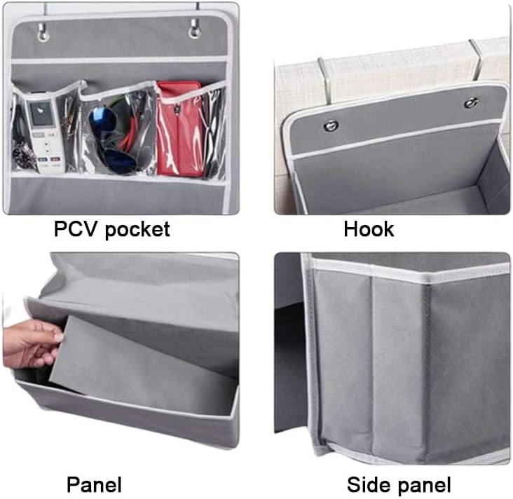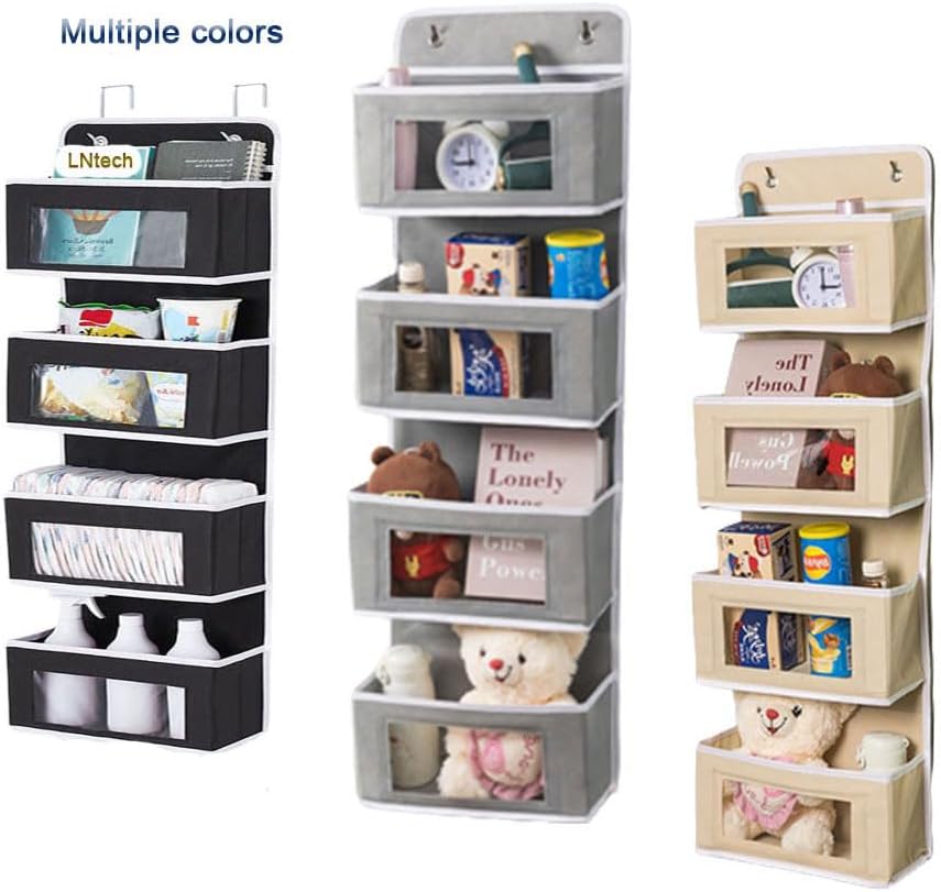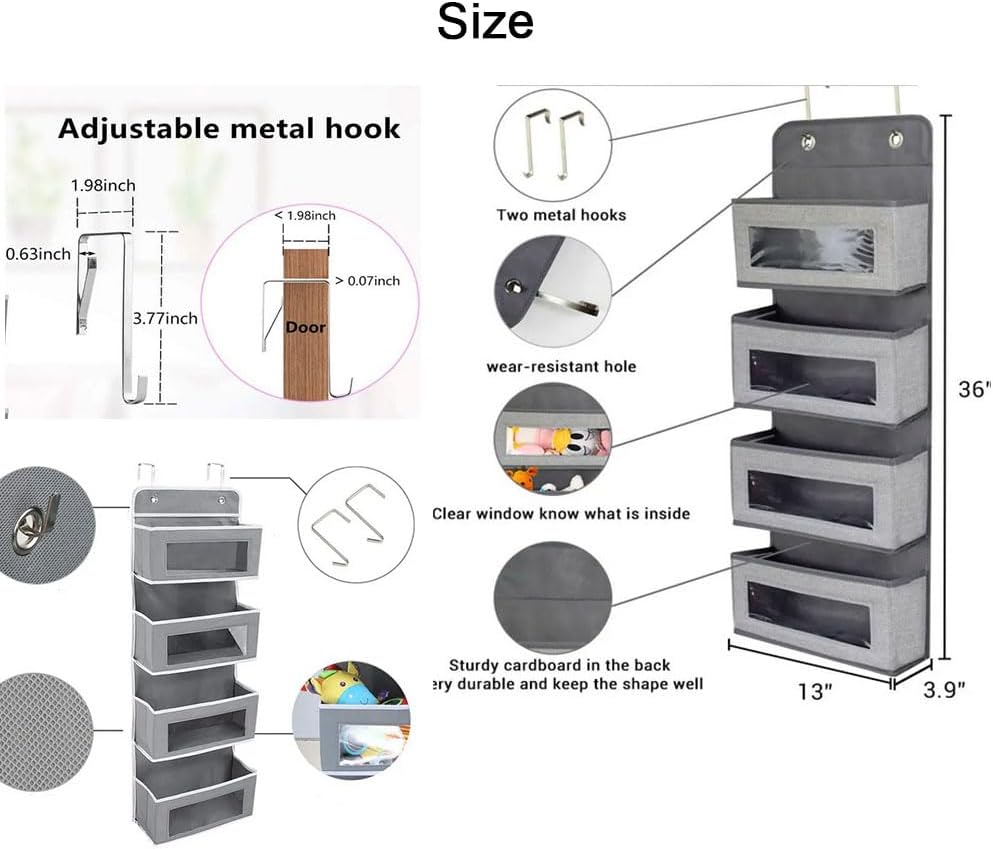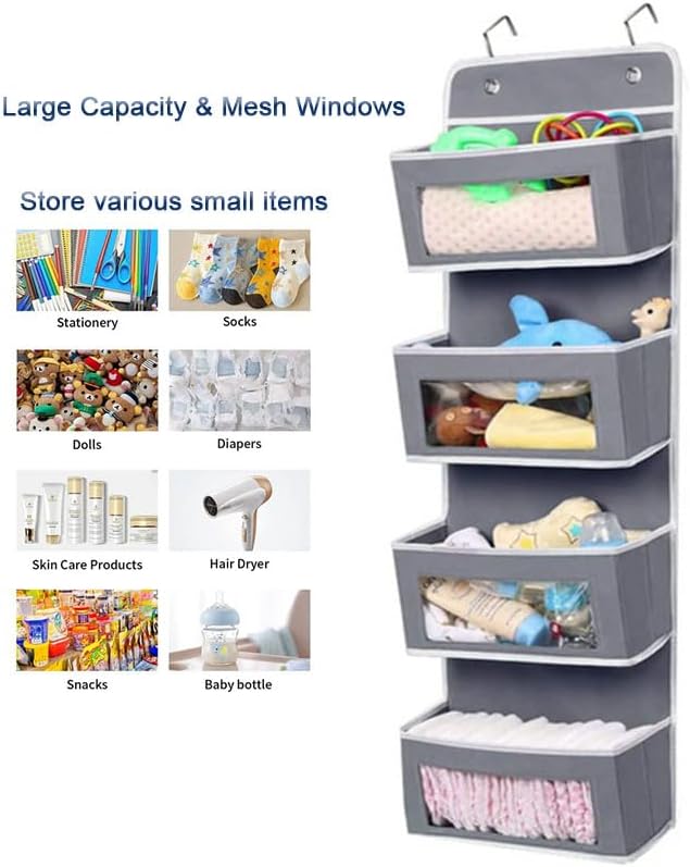 Over The Door Organizer,Load Stuffed Storage Hanging with 2 Hooks,4 Large Capacity Pockets for Closet Bathroom Nursery Bedroom Dorm,Toys Cosmetics Sundries and Baby Essentials (Grey)
