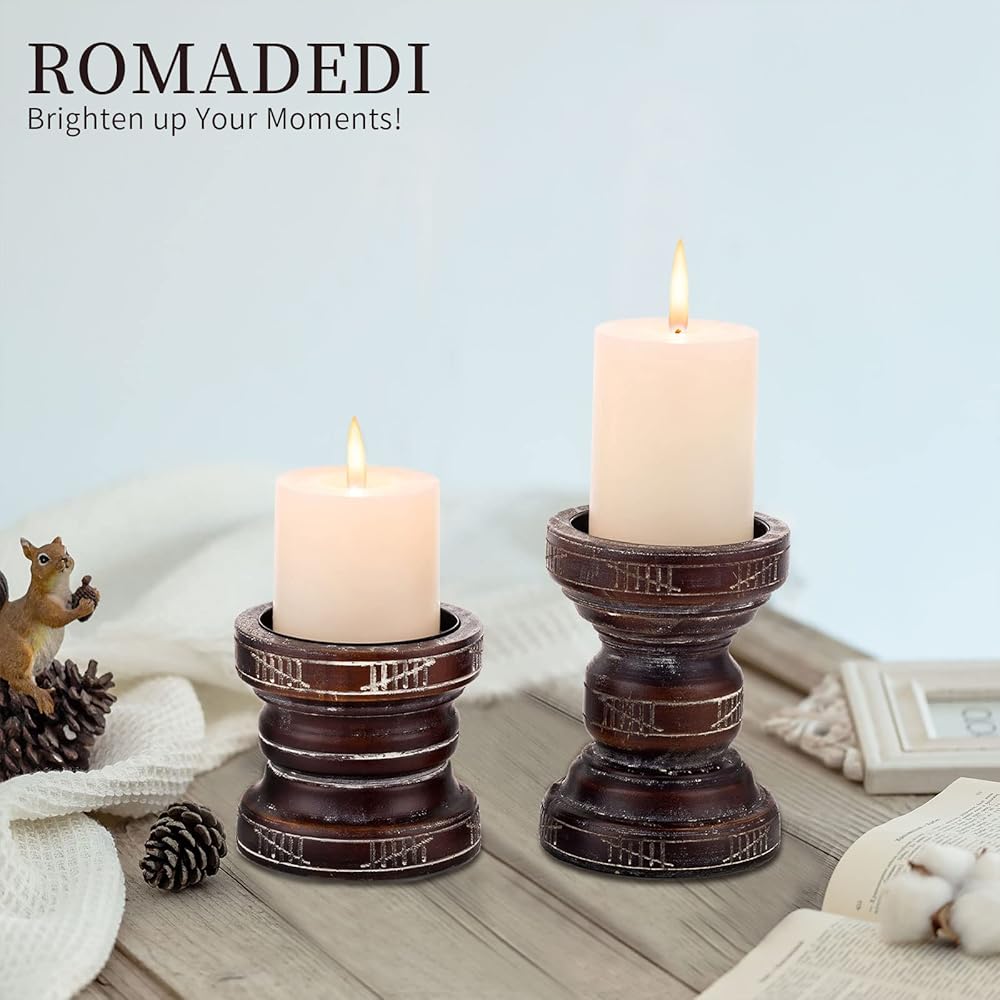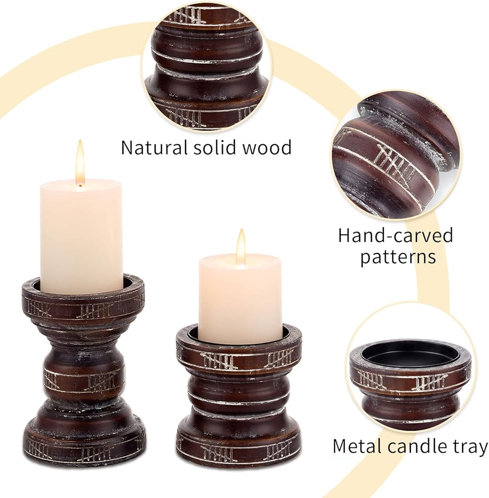 مجموعة من 2 حامل شموع متنوع: يأتي مع حاملي شموع خشبيين ريفيين بارتفاع مختلف: 6.1 انش و4.3 انش. كل حامل شموع عمود مناسب للشموع العمودية وشموع LED التي يقل قطرها عن 3.55 انش