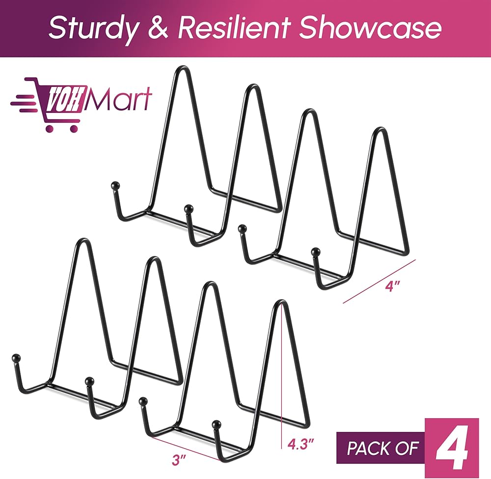 Nifty Craft & Trendy Surfacing: The black photo stands for table display is laminated flawless and smooth, made of stocky wire of 4inch height for items from 7~15 h/d and lip depth of 1.6 fits for multiple items