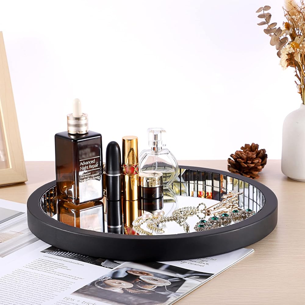💖Decorative Tray-- A good-looking mirror decorative tray for your perfume, jewelry, makeup, trinket, candle or storage bathroom accessories, also as a base of vase. It will clean and adorn your table top without taking too much space.