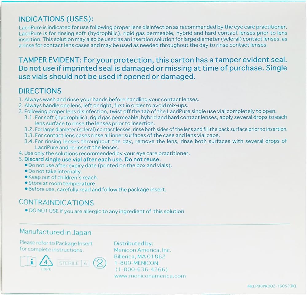 1x 98 Vials Menicon LacriPure Saline