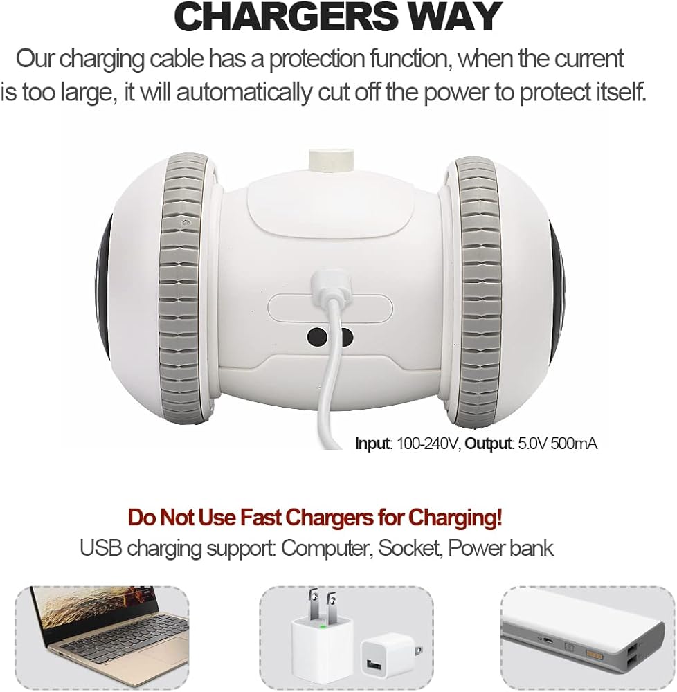 Smart Operation: Built-in intelligent operation program, the smart cat toy will interact with your kitten by 360° degree rotation and runs irregularly, etc. When bumping to the obstacle, it will automatically adjust the direction, no need to worry about getting stuck in a certain place. Noted that Do not use FAST CHARGER.
