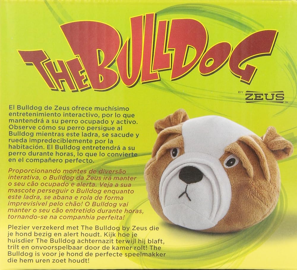 Shake Rattle and Roll: Providing tons of interactive fun, The Bulldog by Zeus will keep your dog busy and on their toes. Barks, shakes and rolls unpredictably for a fun, interactive experience for large and small dogs.