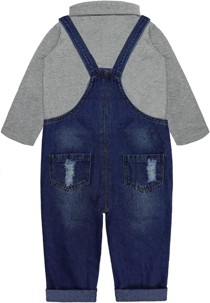 ★Package: 1 Shirt + 1 Denim Overalls, suitable for 6-12 months, 12-18 months,18-24 months, 2-3 years, 3-4 years, 4-5 years baby toddler little girl boy.