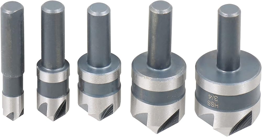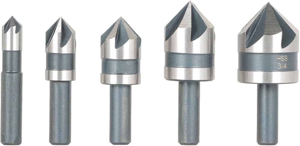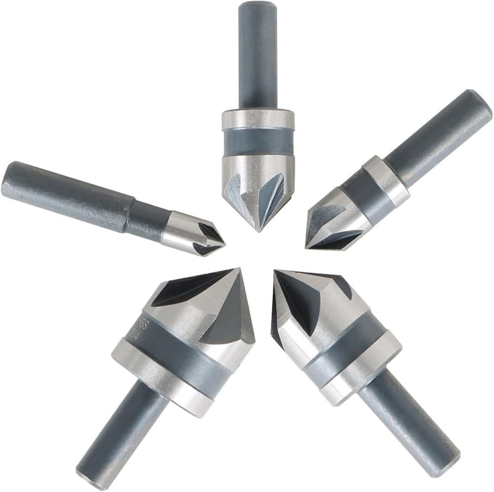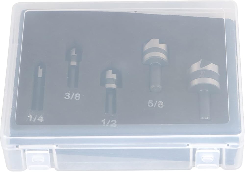 1/4-3/4 Inch HSS Countersink Drill Bit Set for Wood, Metal, Aluminum, Plastic 5 Pieces with Plastic Box