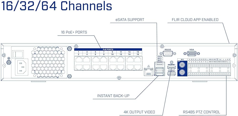 FLIR's DNR800 Series NVRs further accelerate high definition recording, offering higher capacity 320 Mbps processing for real-time recording with cameras up to 8MP (4K). With sixteen integrated Power over Ethernet (PoE) inputs and PoE+ support, installation is made simple. No programming or configuration is necessary as the NVR automatically discovers FLIR IP Cameras on the network. Plus, drive mirroring enables back-up recordings to internal hard disk drive to keep data secure.FLIR's DNR800 Series NVRs include rack mount brackets and rack mount screws.