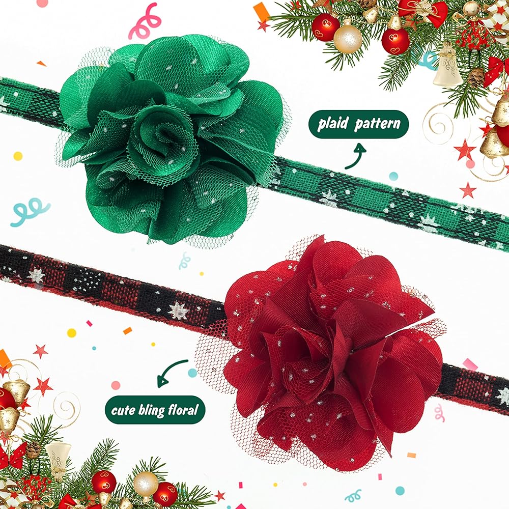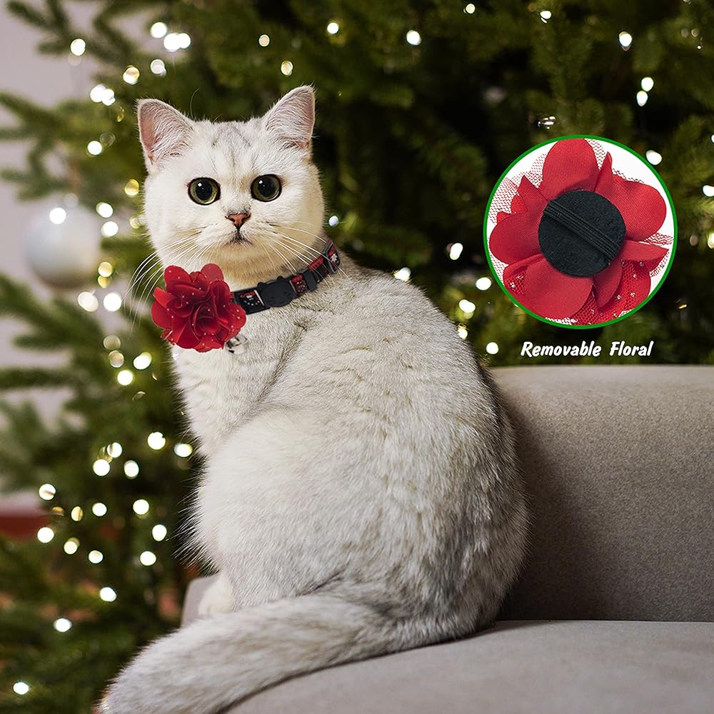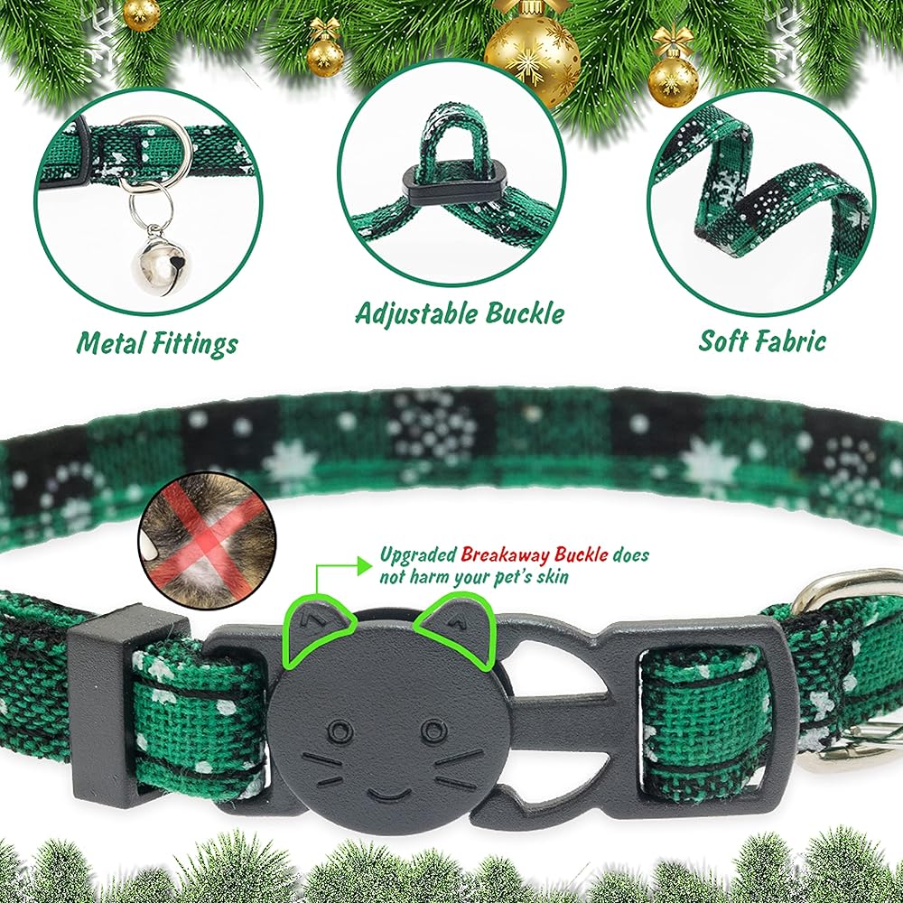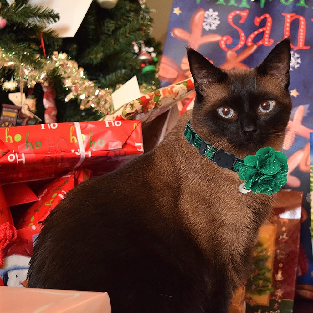 Christmas Cat Collar with Bell - Floral Breakaway Cute Cat Collars - Adjustable Holiday Decoration Plaid Cat Collar Set for Small Medium Large Cats, Kitten, Puppy (Green, red)