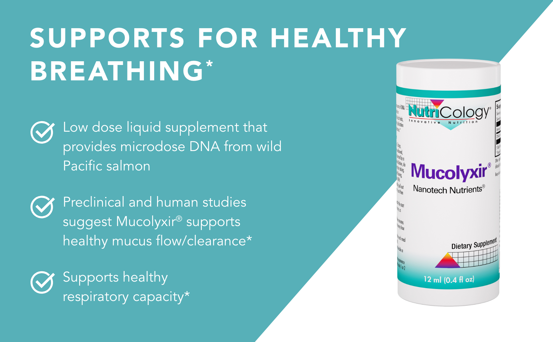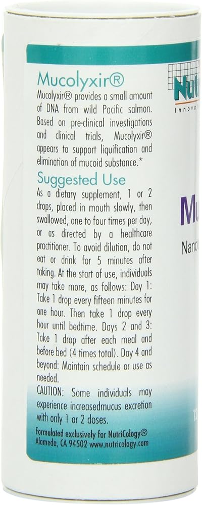 Nutricology Mucolyxir Supplement - Mucus Clearance from Lungs, Mucus Relief, Microdose DNA, Wild Pacific Salmon, Liquid Drops - 0.4 Fl Oz