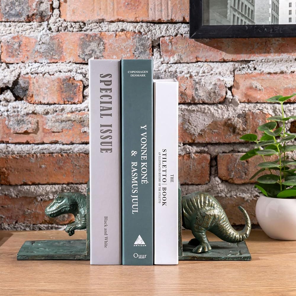 T-Rex shaped bookends make a unique gift or decoration for any boy's room, kids playroom, office, or dino-lover home