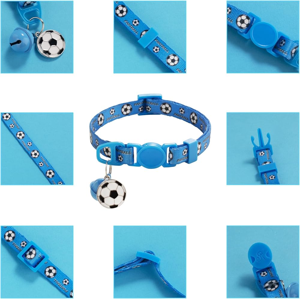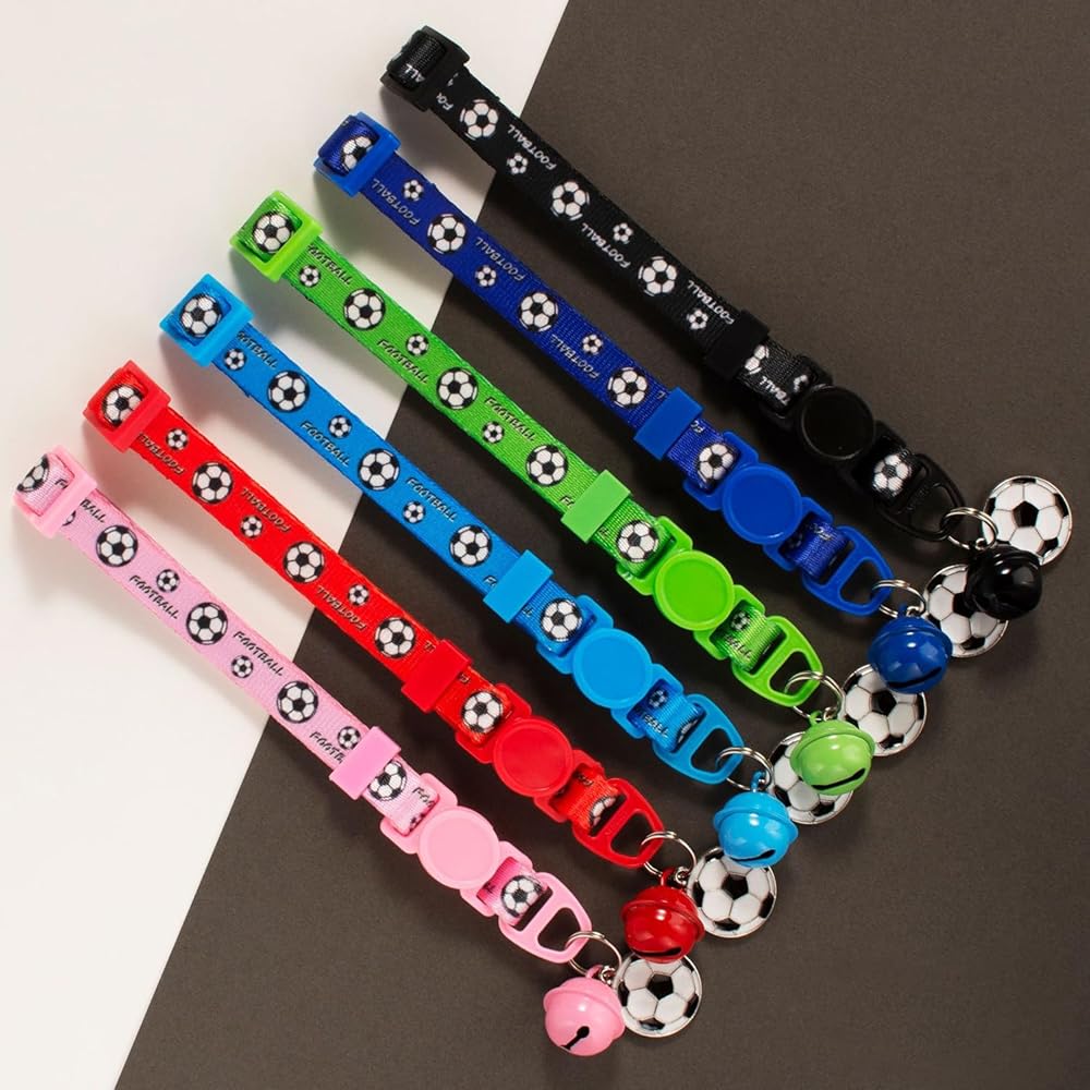 6 Pack Puppy Collars with Bell, Breakaway Cat ID Collars Adjustable 7.5-12.6in, Cute Football Pattern Soft Nylon Identification Collars for Girl Boy Puppy Cat, Pet Gifts(Football)