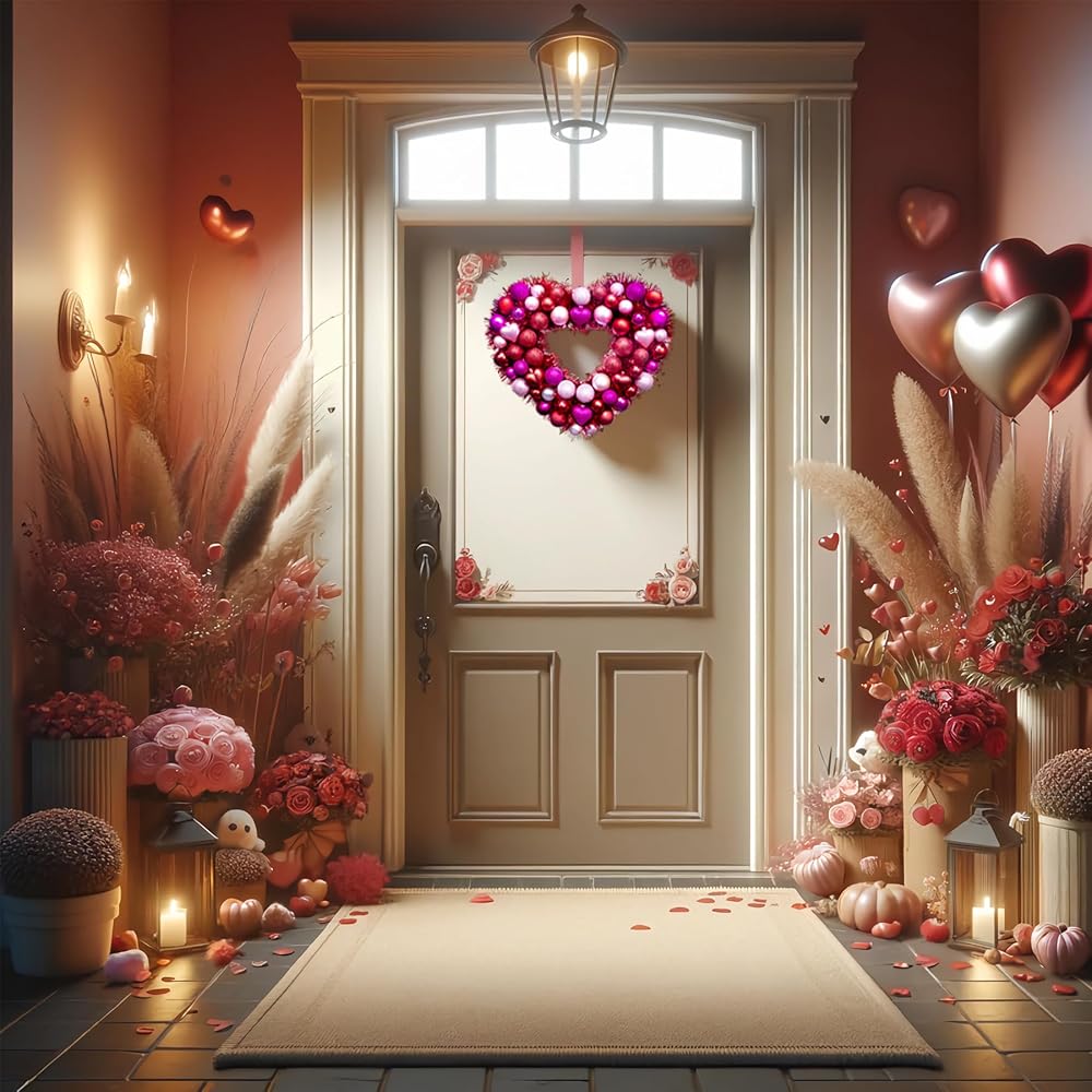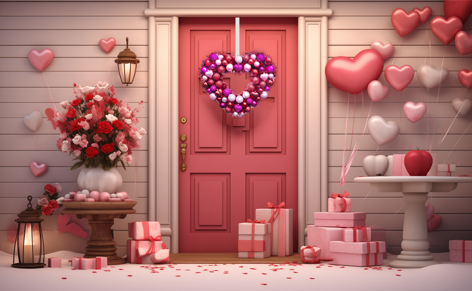 Decorate your home: This Valentine's Day heart-shaped wreath comes with round and heart-shaped balls, which can be hung on the front door or anywhere in your home, creating a romantic atmosphere and decorating your home on Valentine's Day or weddings.Note: The specific form and color of the product can be observed in the video in Figure 7.