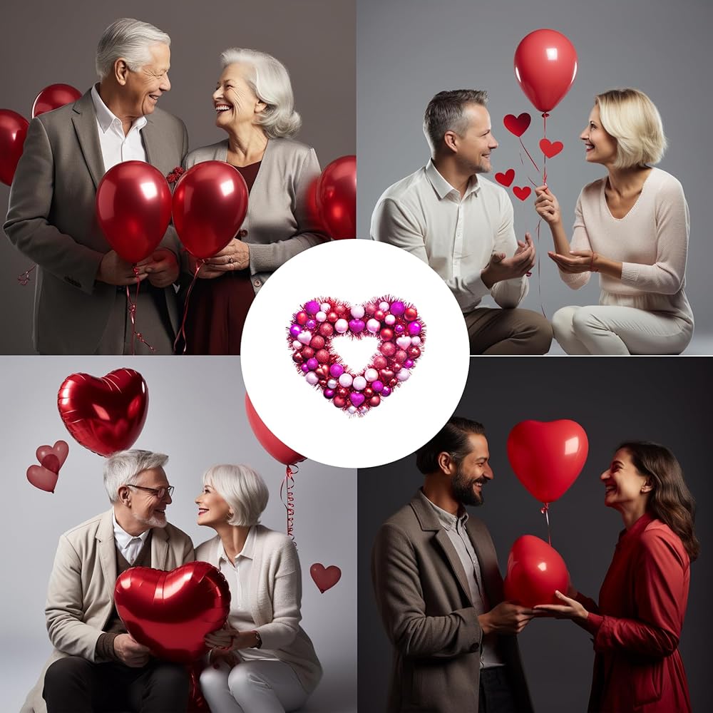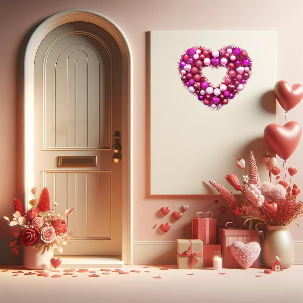 High Quality Material: This Valentine's Day heart-shaped wreath is made of durable and sturdy material, with a variety of different tones of spheres and hearts inside, and the frame is fixed and not easily deformed. It can be used immediately after unpacking, no additional installation process is required.