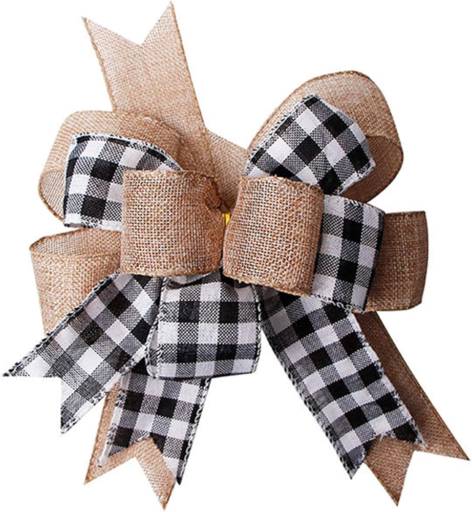 Delicate Design: Colored in black white buffalo plaid and burlap bows, which designed for all seasons. These exquisite rustic bow are indispensable spring time adornment for decorating your wall, yard fence, garden, stairs, and any where you want.