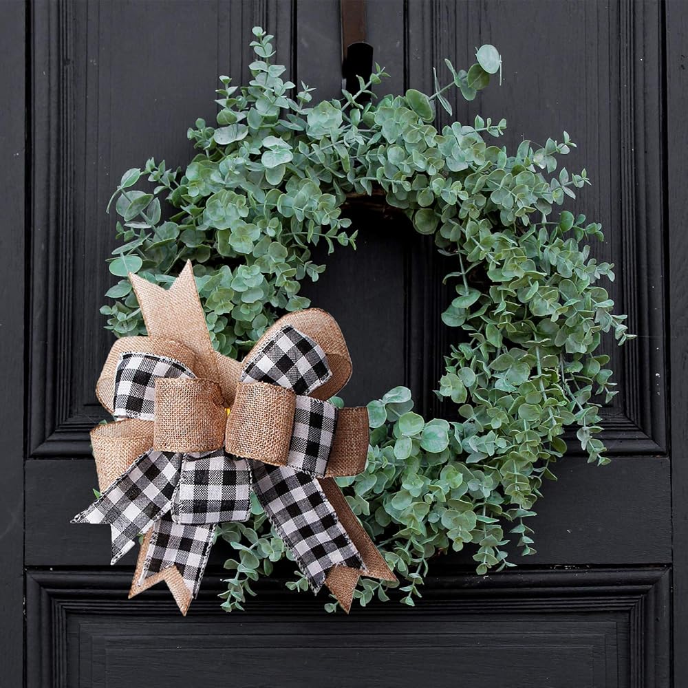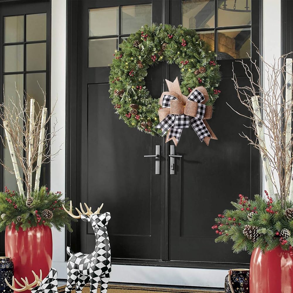 Many Uses: The black white buffalo plaid wreath bow is perfect for decorating a year-round, spring, Easter wreaths, summer, fall and Christmas holiday, farmhouse , front door and home decor and more.