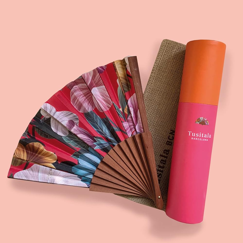 • 🎨 Artistic Inspiration: A fusion of fashion and art, each hand fan from Tusitala Barcelona showcases a vibrant, multicoloured design, turning a simple gesture of cooling into a display of style, perfect for adding a touch of sophistication to your ensemble