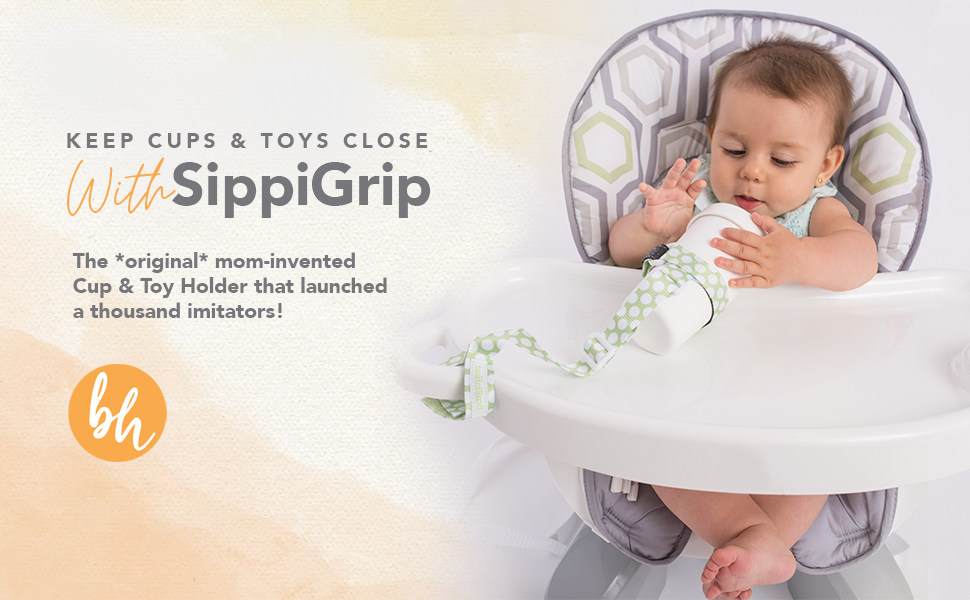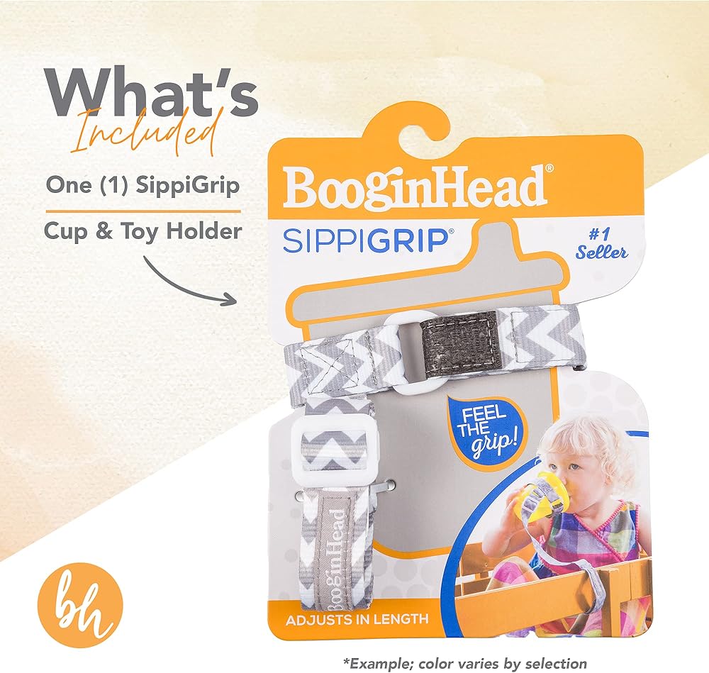 Contains three (3) SippiGrip sippy cup strap & toy tethers for ages 3-36 months. Works with high chairs, strollers, restaurant seats, and more! Secure a toy, keep cups and teethers close and clean, and stop spills with the BooginHead SippiGrip Cup Holder! SippiGrip is the *original* mom-invented sippy cup strap that launched the company in 2007.