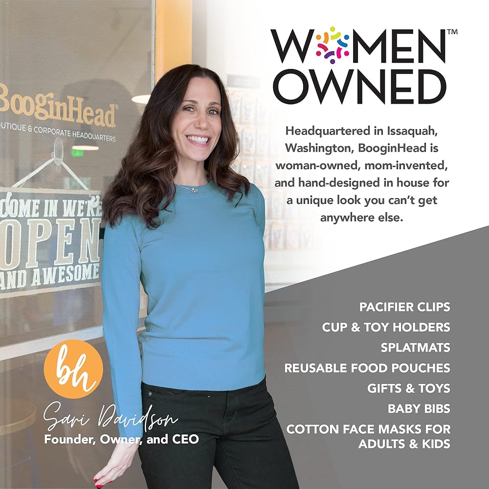 BooginHead is a woman-owned small business located in Issaquah, Washington. Makers of stylish and functional baby essentials like pacifier clips, cotton bibs, pacifier holder stuffed animals, and sippy cup holders, BooginHead hand-designs their unique patterns in house for an upleveled look and feel. BooginHead is the perfect choice for new parents who want something a little more special, but also need their baby stuff to *work.*