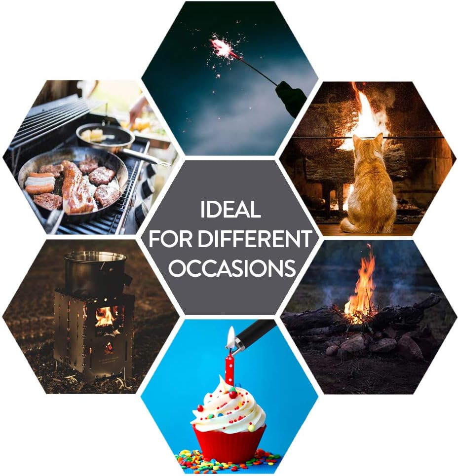 【CONVENIENT 】- Wind & Splash Proof Design prevents the electric pulse produced from being blown out by strong wind, The lightweight design makes the lighter easy to carry and ideal for camping, BBQ ,hiking ,indoor and outdoor activitiess.