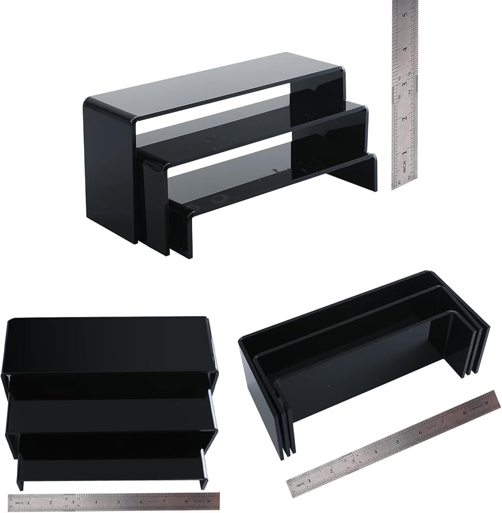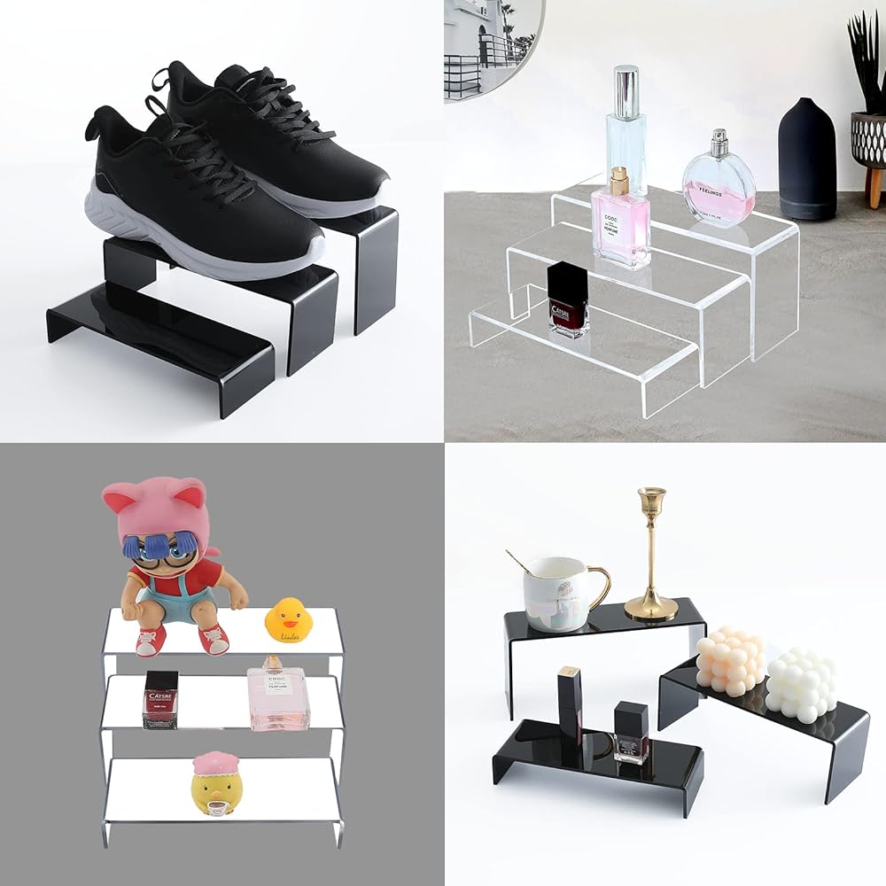 The clear acrylic display risers, durable and reusable, and they are easy to store, good display tool for neat and organized arrangement.