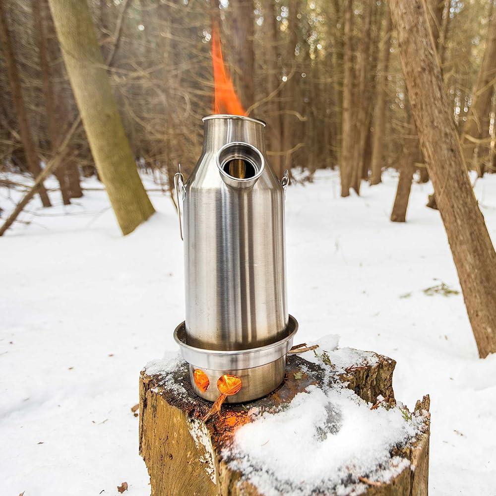 BOILS WATER IN MINUTES: This Kelly Kettle brings water to a boil in a matter of minutes using whatever fuel is naturally occuring in the area.