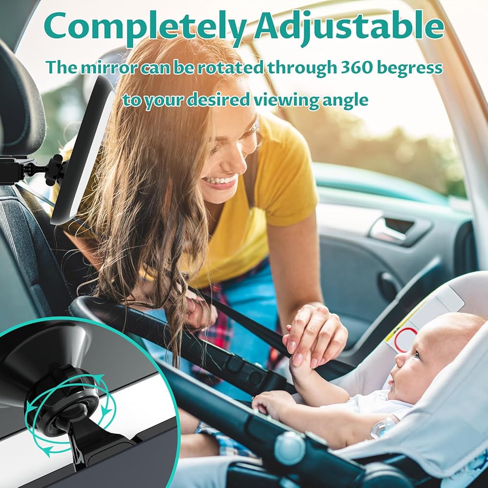 🚕 Full Flexible: Equipped with 360°rotatable ball at the baby car seat mirror, the angle of baby mirror can be easy adjusted according to the position of the baby seat, a baby car essential designed for safe travel