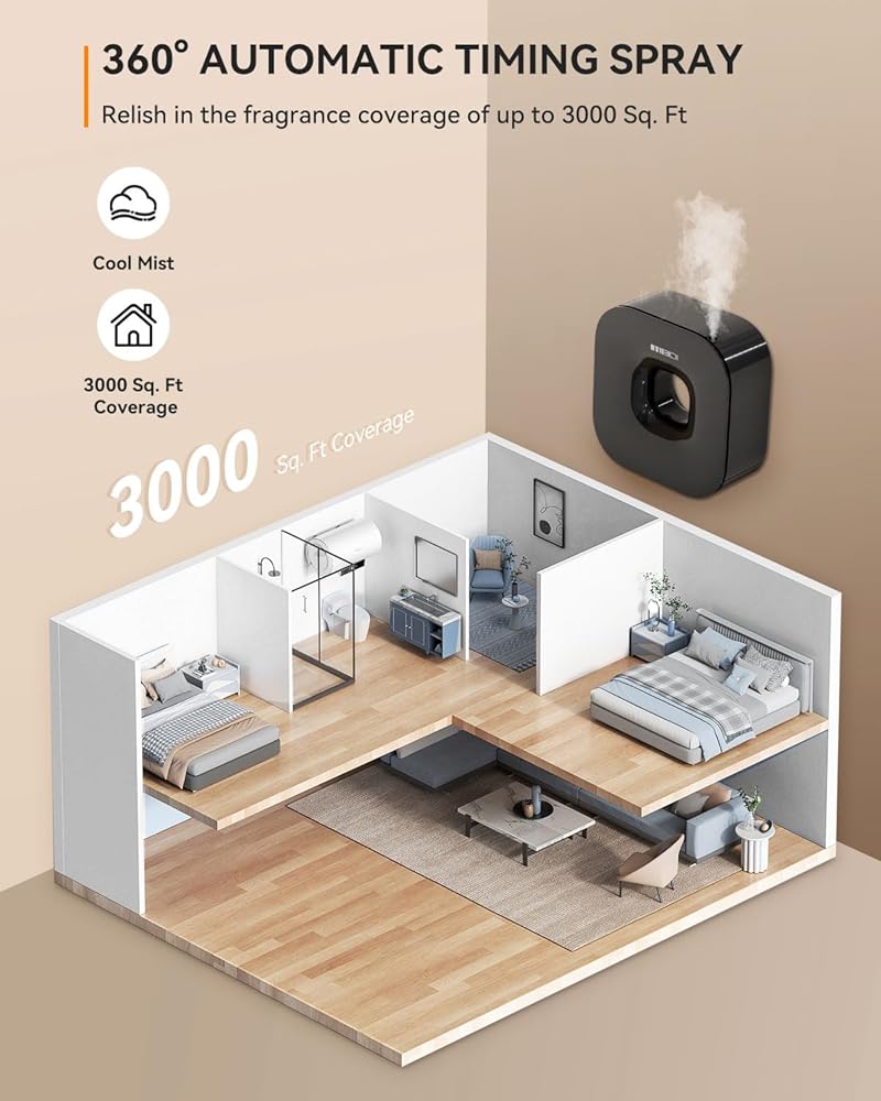 🌟 Quieter and Greater Enjoyment: Utilizing the innovative dual-fluid atomization technology, it produces less noise compared to ultrasonic diffusers, providing a quieter environment to better savor the beauty of fragrances.