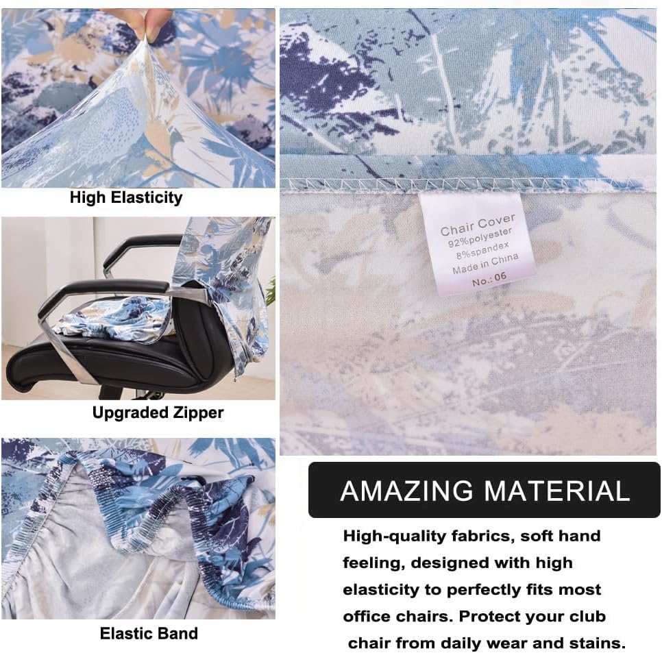 OFFICE CHAIR DECORATION SLIPCOVER. Proctect your office chair and washable and replaceable slipcover always keep your chair clean and fresh. Also multiple fashion printed patterns for your choices to it can give your old damaged office chair a new look.