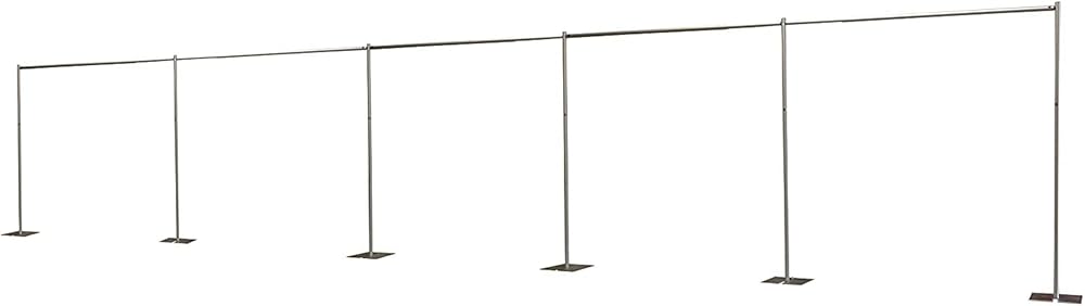 An eye-catching, professional grade decoration backdrop piece to perfectly pull together any theme and transform any room into a setting for parties, special occasions or business events . This frame can make 90 degree turns, so you can create walls, branch walls, cubicles, room dividers and trade-show booths. Frame can cover up to 50 feet in floor width, and is 8 feet tall. Can be divided up into multiple free standing sections. Components collapse down for transport and storage.