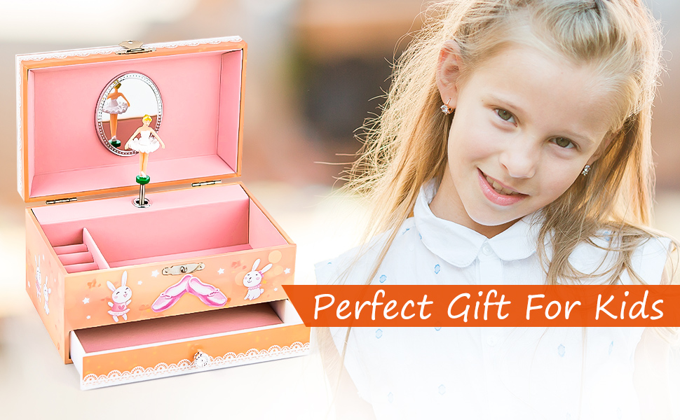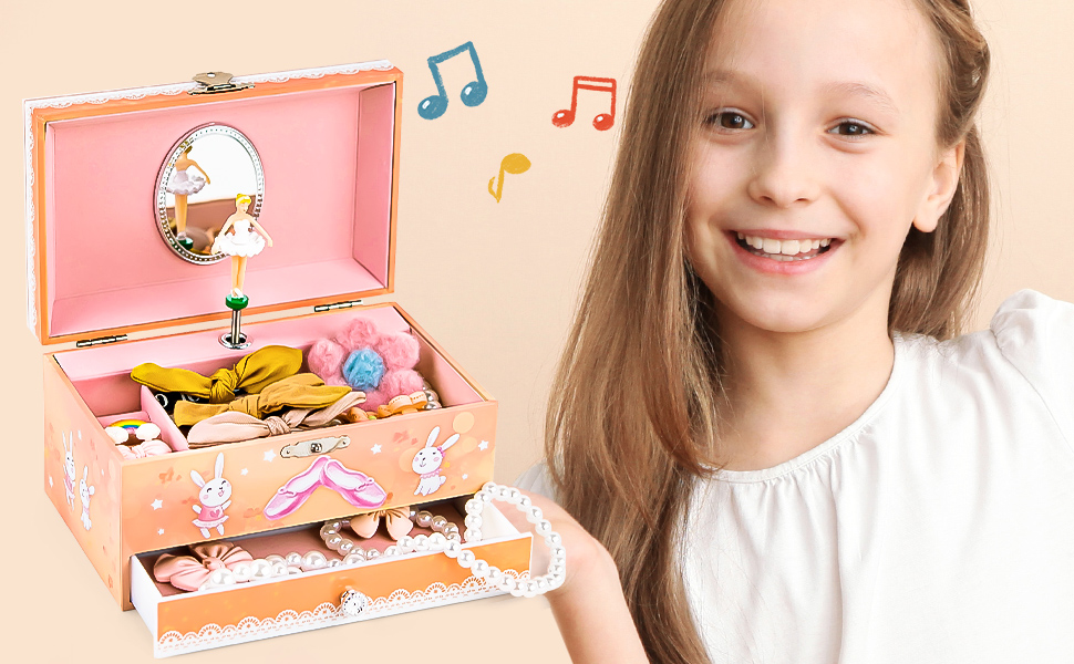 STORE PRECIOUS TREASURES - This Ballerina music box provides a spacious bottom drawer jewels storage with plenty of space to organize little girls' jewelry, bracelets, earrings, and other keepsakes.