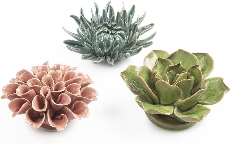 Beautiful and Versatile — This set of 3 decorative artificial plants is made from fully glazed porcelain, and can be easily cleaned with a damp cloth. This set contains 3 eye-catching pieces that complement each other beautifully.