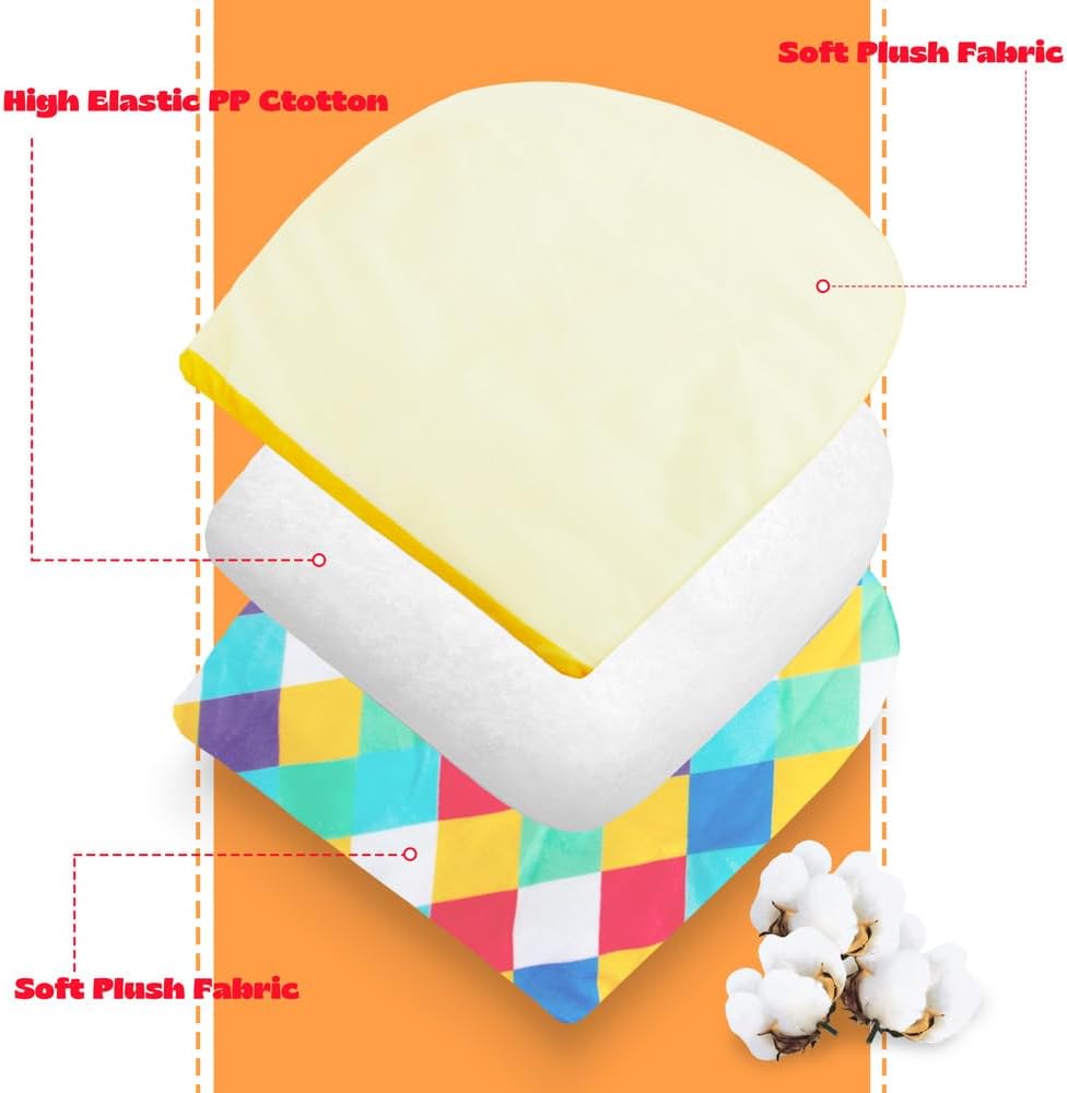 Material: dual layer soft plush fabric outside and one layer high elastic PP cotton inside