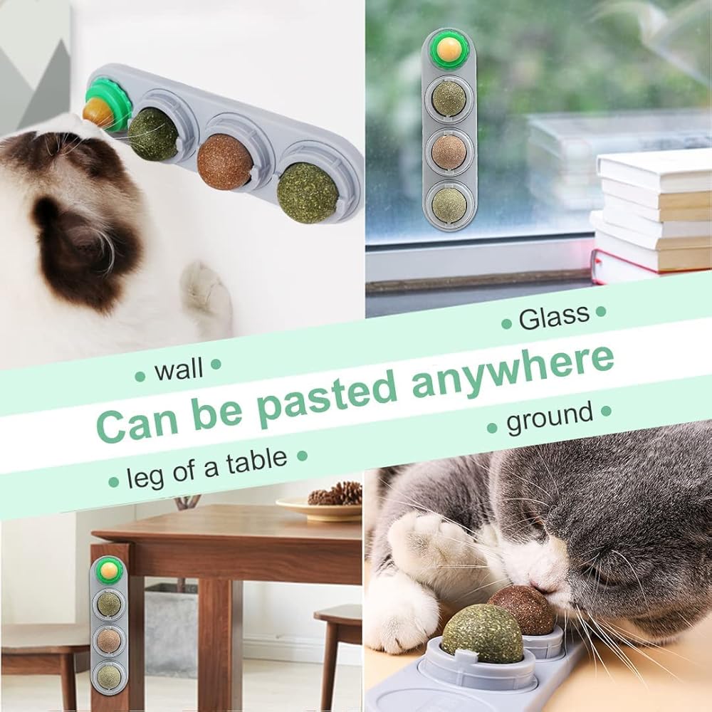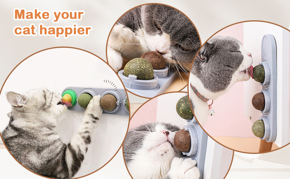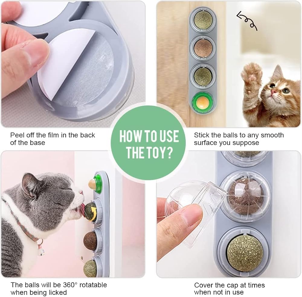 Unique Design: To use conveniently, the base has the bonus sturdy double-sided adhesive tape so you could easily stick the board securely to smooth surface you suppose, no falling off when kitten licks or rubs. Plus, The magic balls are 360° rotatable when being licked.
