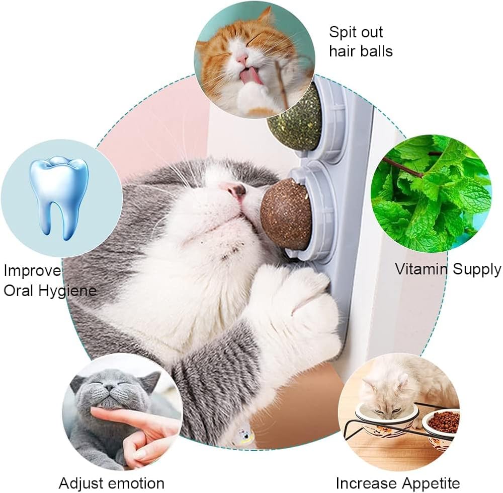 Care for Oral Health: 80% of cats can't resist the fragrance of catnip, silvervine and gall fruit. While chewing or rubbing, they effectively eliminates dental plaque and tartar, and improve oral health for your furry babies. When licking, dietary fiber contained in catnip silvervine balls helps cats to excrete hairballs and improve digestion. The healthier your furbabies are, the better the mood is, the closer you get together.