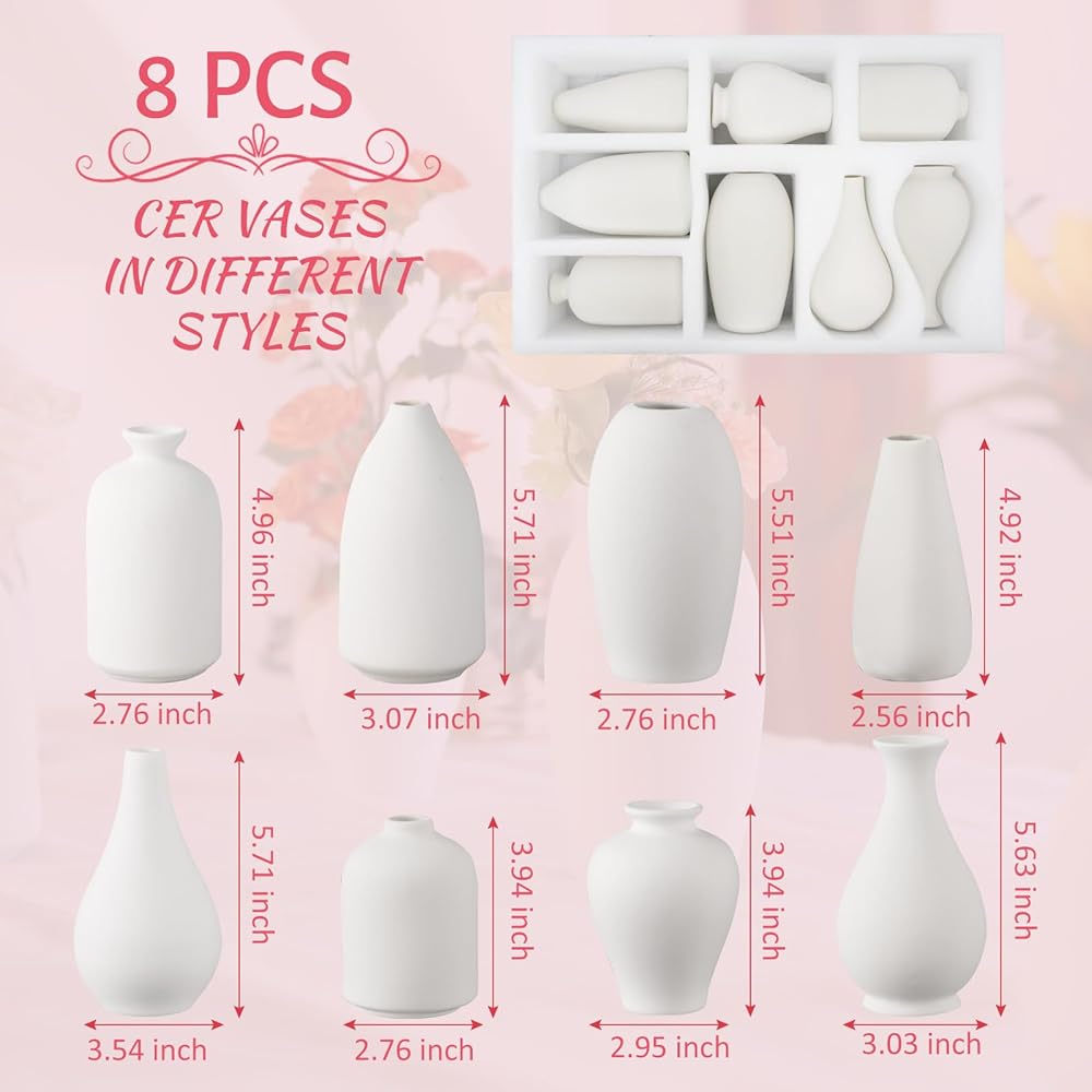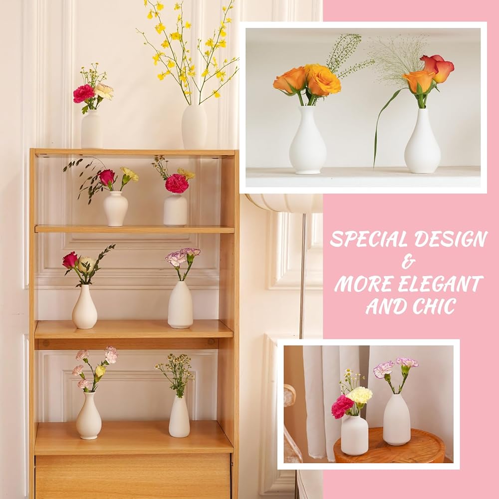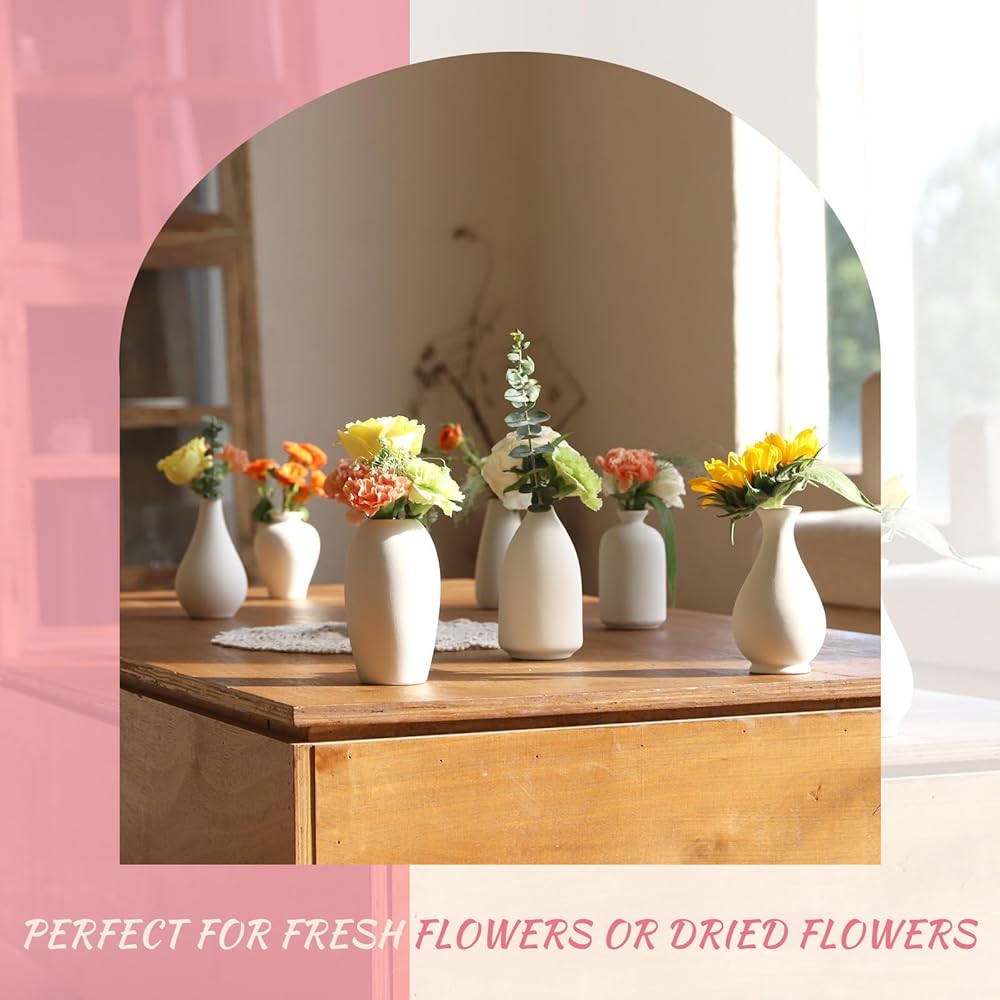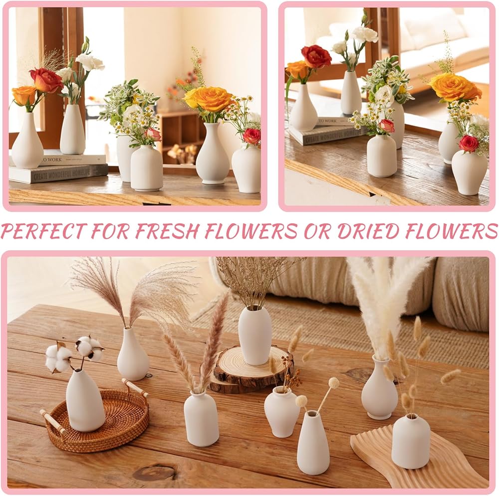 【Modern Ceramic Vase Décor】This 8pcs small white vases for flowers in varying shapes and sizes adds peace and aesthetic to your home room decor and keep minimalistic. 8 Different Shapes vases could hold a few stems of flowers and plants in your need(Please check the detailed size of each style vase in the picture)