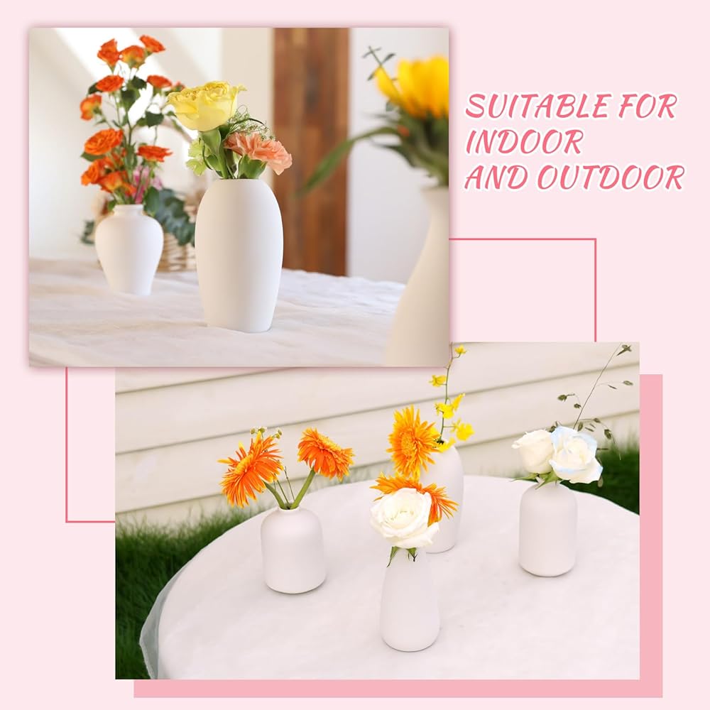 【Vases For a Beautiful Centerpiece】Use this ceramic vase in bulk to create beautiful centerpieces on your wedding or dining table, events and big projects, or simply scatter them around your home or office space for a touch of elegance. These bud vases in bulk will provide you with a stylish and affordable solution.