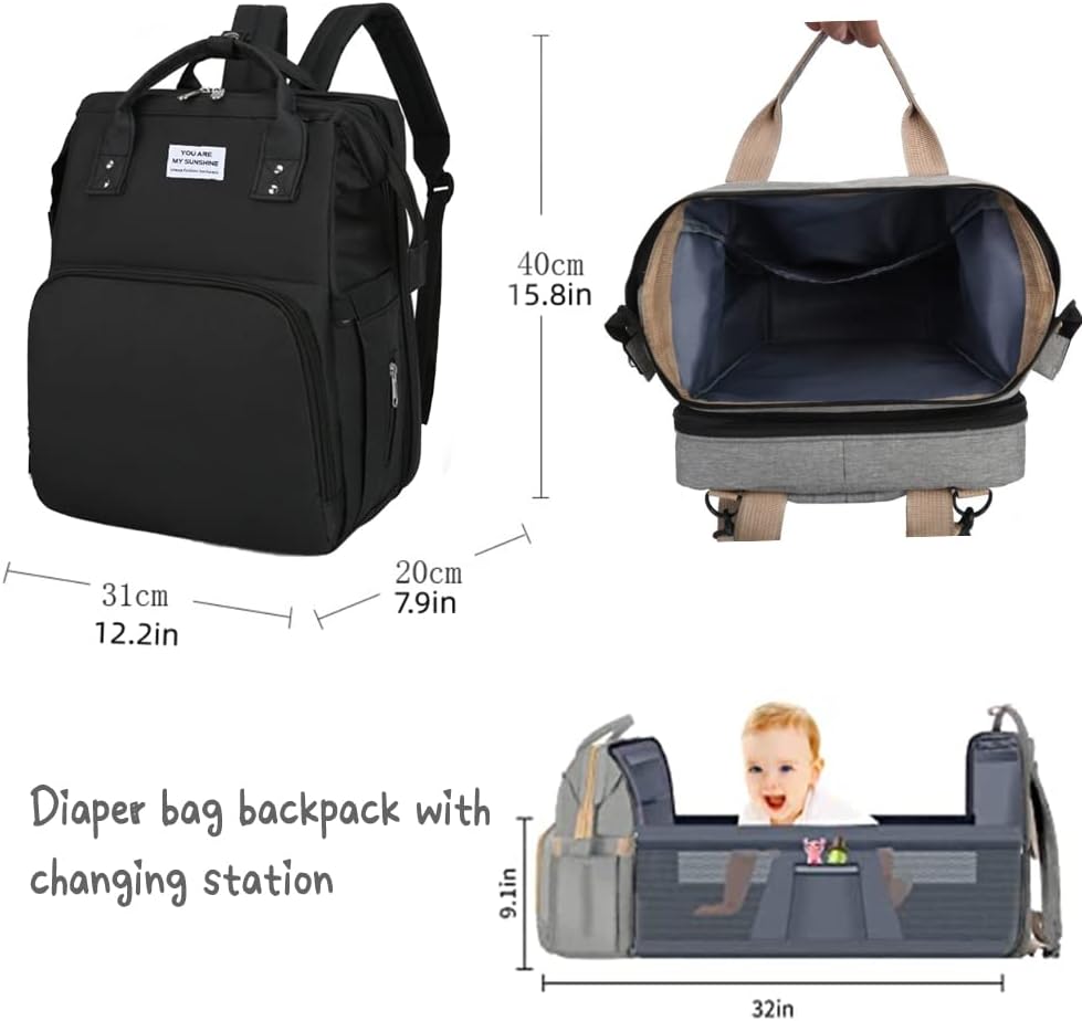Diaper Bag Backpack Multifunction Baby Bag Waterproof Large Travel Back Pack with Changing Station and USB Charging Port for Moms Dads Baby Registry Search Newborn Baby essential Gifts